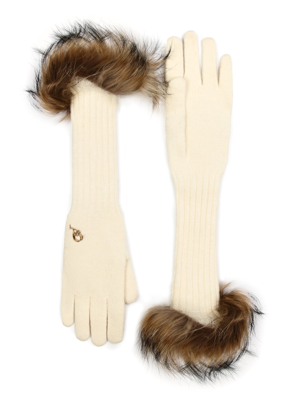 Удлиненные перчатки с меховой опушкой. Элегантная удлиненная модель изготовлена из теплой шерстяной пряжи. Идеальная защита от холода и завершающий акцент для вашего пальто или куртки.