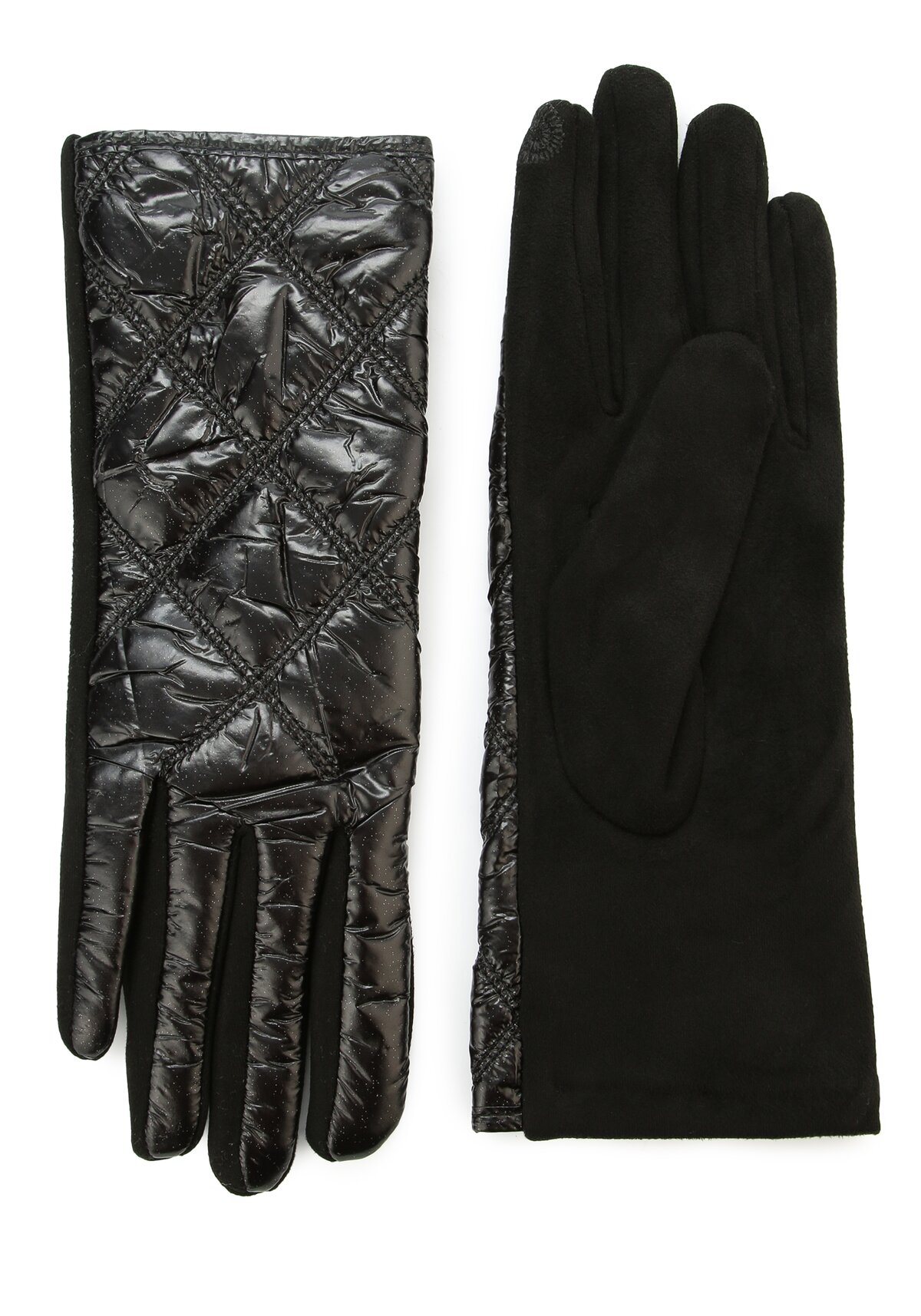 Мягкие эластичные перчатки на флисовой подкладке выполнены из ткани “под замшу” со стеганой тыльной стороной. Перчатки оснащены сенсором touch screen для удобства пользования смартфоном.