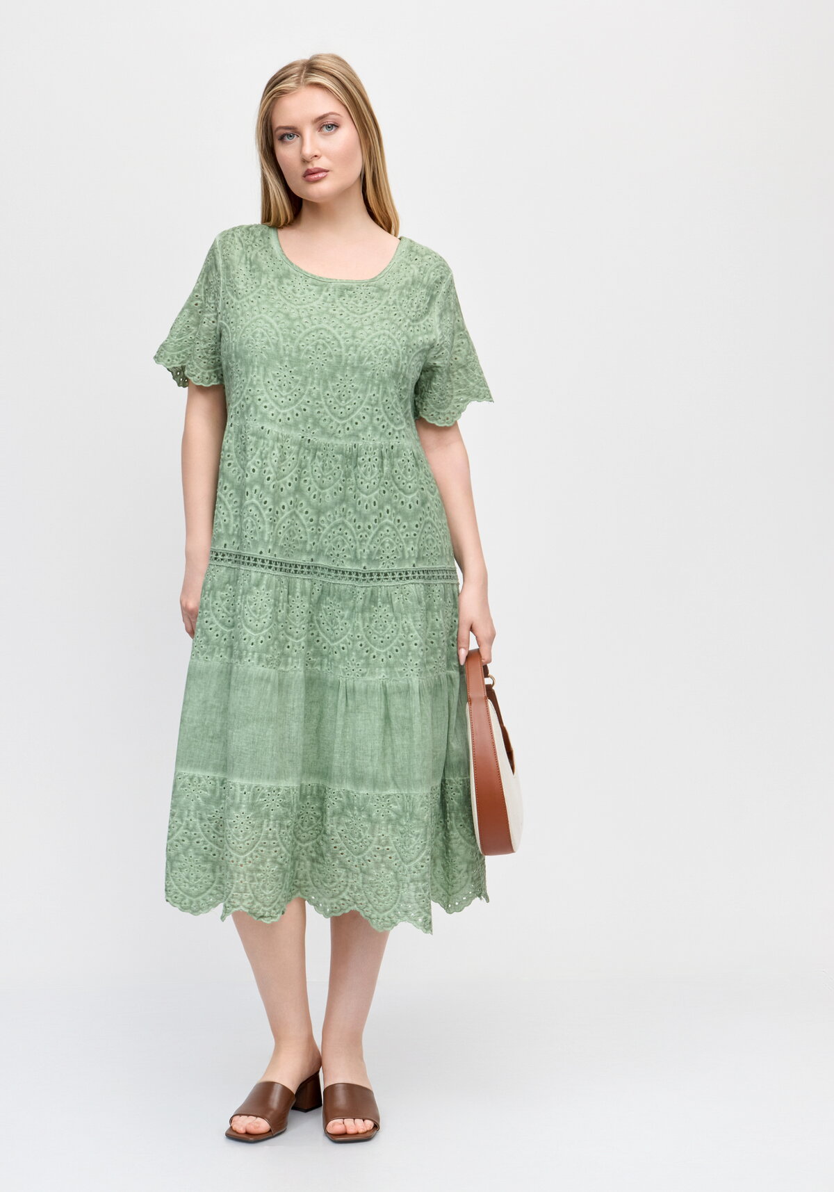 Изящное платье А‑силуэта с ярусами на подкладке очарует вас своей утончённой красотой и подарит ощущение настоящей праздничности даже в обычный день. Воздушная ткань шитьё мягко струится при движении, создавая нежный и женственный образ, полный очарования. Круглый вырез горловины деликатно обрамляет линию шеи, а втачной короткий рукав обеспечивает комфорт и подходит для самых разных сезонов. Изысканные ярусы, украшенные отделочным кружевом, добавляют модели особый шарм и романтичное настроение, подчёркивая вашу индивидуальность. Это платье станет настоящей жемчужиной гардероба — с ним каждый ваш выход будет по‑настоящему запоминающимся и стильным!