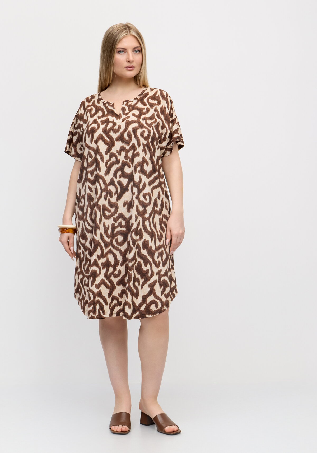 Почувствуйте комфорт в каждом движении с элегантным женским платьем свободного кроя — идеальный выбор для повседневной жизни, отдыха и домашнего уюта. Модель длиной до колена сшита из натуральной ткани, которая приятно прилегает к коже и не вызывает дискомфорта. Цельнокроеный рукав и фигурная линия низа создают утончённый силуэт, подчёркивая ваш неповторимый стиль. Декоративная вставка по горловине добавляет образу изысканные акценты, делая наряд чуть более нарядным даже в будни. Это платье станет любимой деталью гардероба — практичной, универсальной и неизменно актуальной.