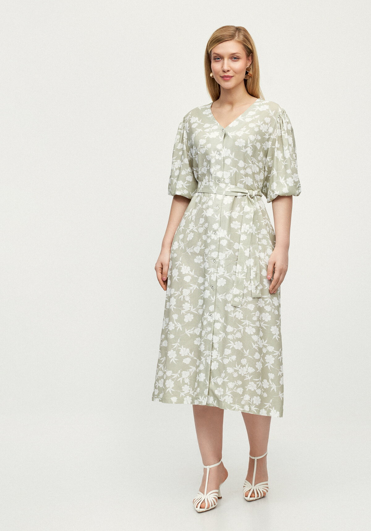 Откройте для себя секрет лёгкого летнего стиля — женское платье с цветочным принтом из мягкой дышащей ткани подарит комфорт и подчеркнёт вашу индивидуальность в тёплые дни. V‑образный вырез, короткий рукав и пояс на талии создают изящный образ, а удобные боковые карманы и застёжка на пуговицы добавляют модели практичности. Состав изо льна и хлопка обеспечивает приятную текстуру, отличную воздухопроницаемость и лёгкость в уходе — идеальный выбор для повседневных луков!