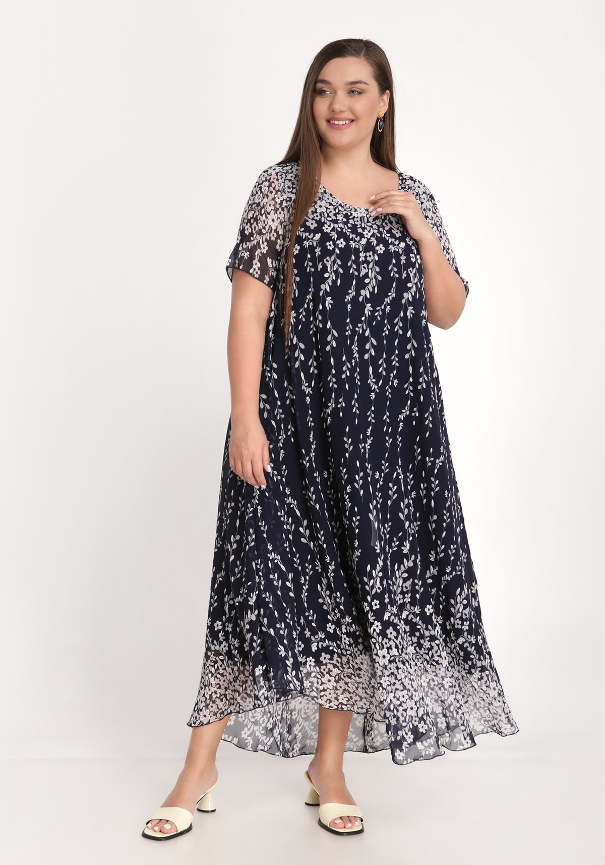 Платье длины макси с актуальным принтом. Легкое и воздушное — оно займет почетное место в вашем летнем гардеробе. Свободный крой не сковывает движений и скрывает недостатки фигуры. Широкий размерный ряд. Отличный вариант как для повседневной носки, так и для торжественного выхода.