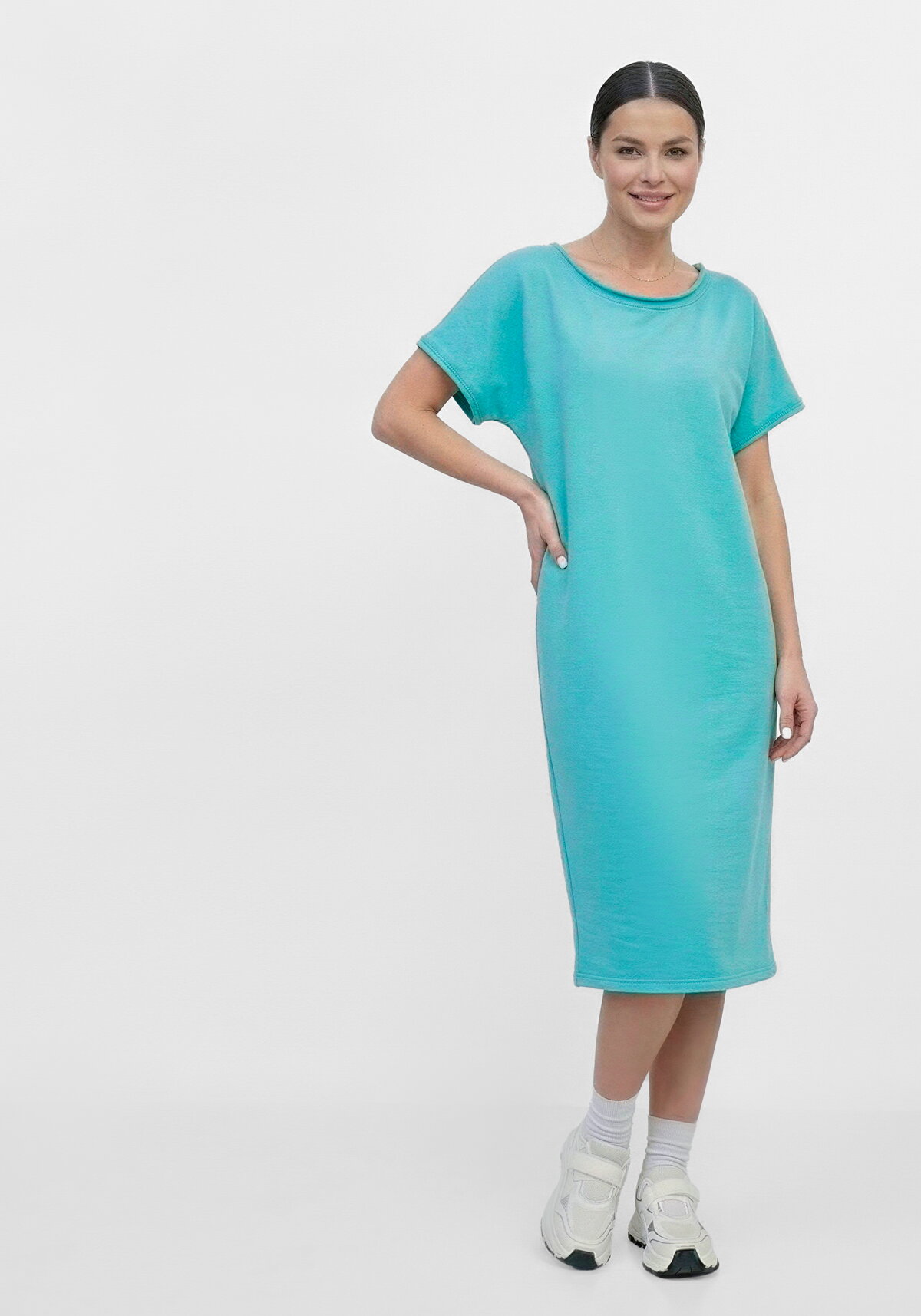 Платье свободного кроя от бренда ARTESSA — это идеальный выбор для летнего сезона. Модель выполнена из мягкого трикотажного футера с добавлением эластана, что обеспечивает комфортную посадку, лёгкое растяжение и отличную воздухопроницаемость. Силуэт прямой, без конструктивных линий на полочке и спинке, с небольшим сужением к низу, что создаёт плавный, женственный контур. Длина ниже колена делает платье уместным как для прогулок, так и для неформальных встреч. Особое внимание привлекают внутренние карманы, расположенные в боковых швах, — редкая и очень практичная деталь в женских платьях. Овальный вырез горловины не глубокий, а рукава — короткие и цельнокроеные, с двойными планками по краю, которые аккуратно закручены на лицевую сторону. Четыре природных оттенка — светло-серый, темно-синий, мятный и лавандово-розовый — легко комбинируются с обувью и аксессуарами, позволяя создавать как монохромные, так и яркие образы.