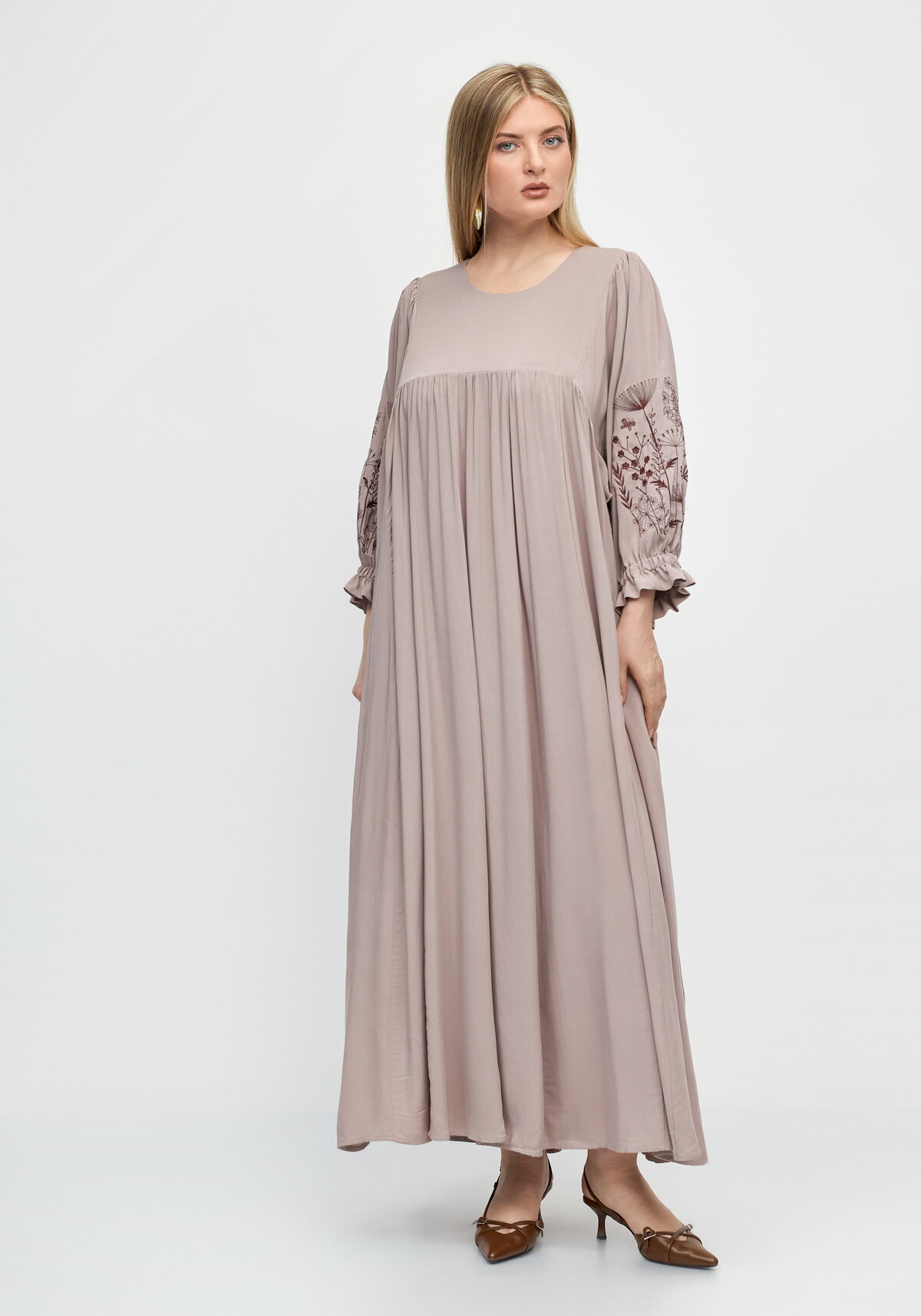 Очаруйте окружающих изысканным женским платьем макси свободного кроя — модель с отрезным лифом и двойной центральной частью подчеркнёт вашу индивидуальность и добавит образу утончённости. Объёмные рукава с резинкой по низу украшены нежной вышивкой «Луг» с одуванчиками, а присборенная юбка из клиньев придаёт силуэту лёгкую романтичность — продуманные детали делают наряд по‑настоящему особенным. Удобные карманы в боковых швах добавляют практичности, позволяя наслаждаться каждым моментом в комфортном и стильном платье, созданном для вдохновляющих образов!