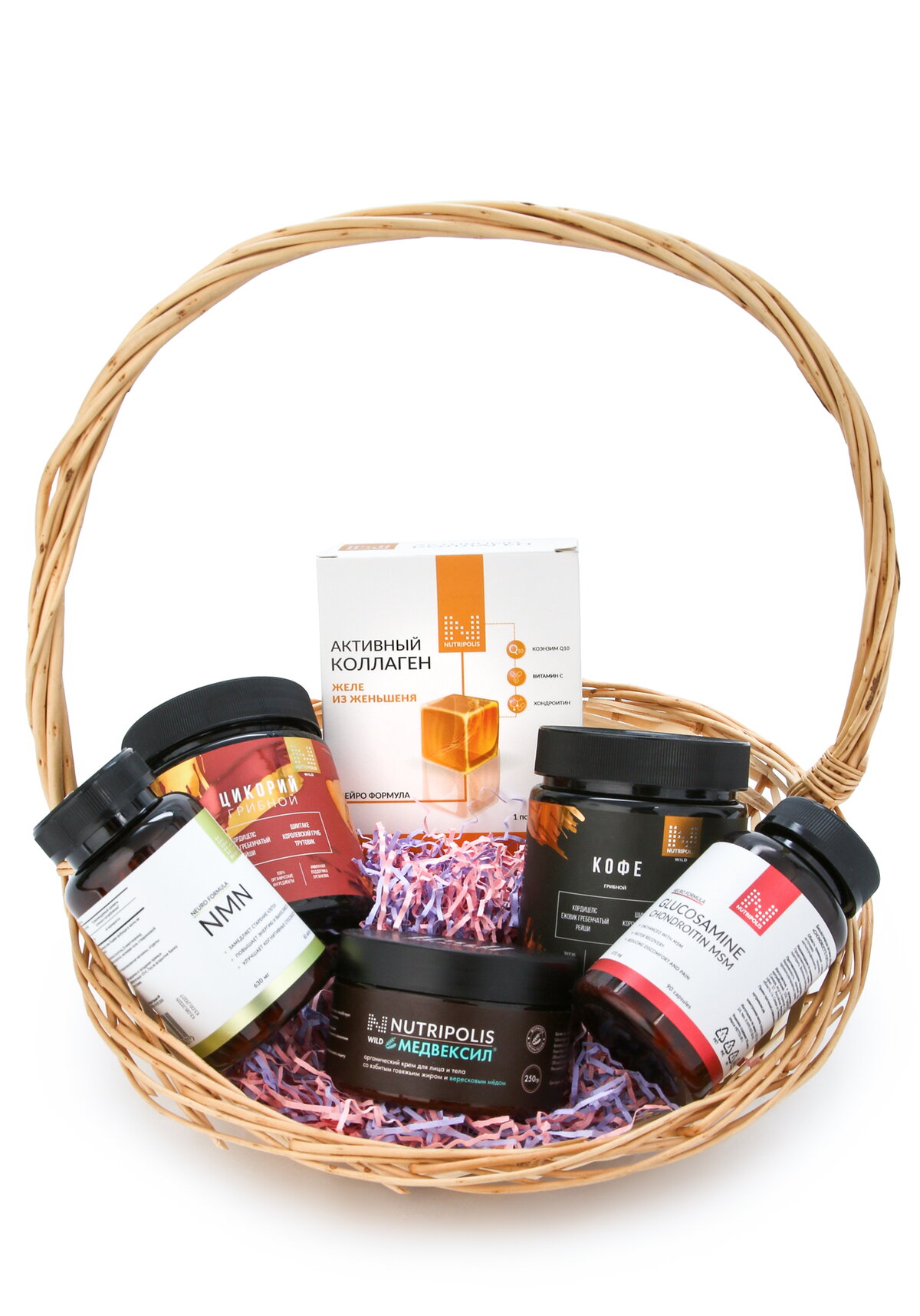 ХарактеристикиТип набора: Подарочная корзина с БАДами и средствами ухода.