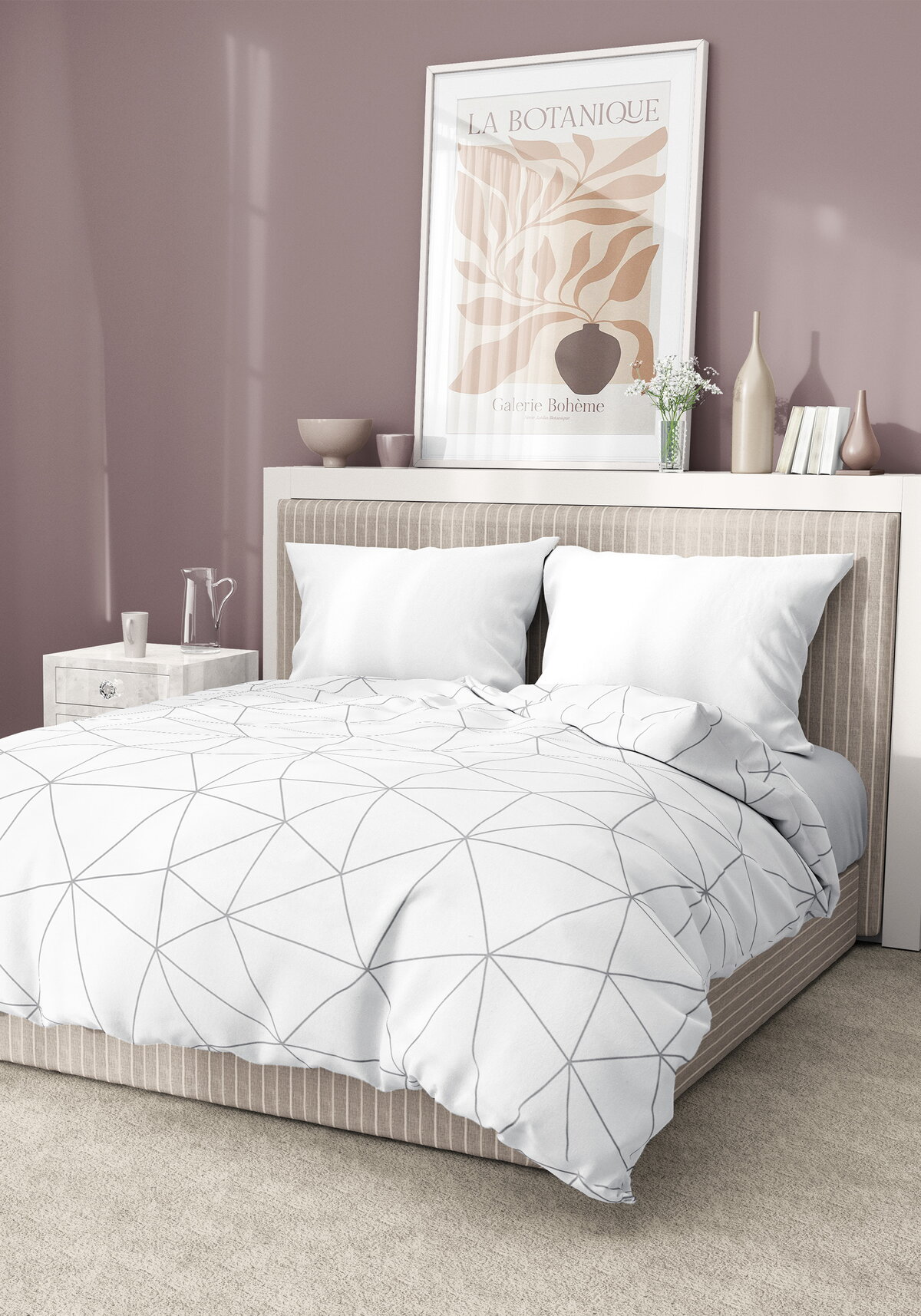 Пододеяльник из хлопкового поплина с оригинальным геометрическим принтом, напоминающим созвездие.