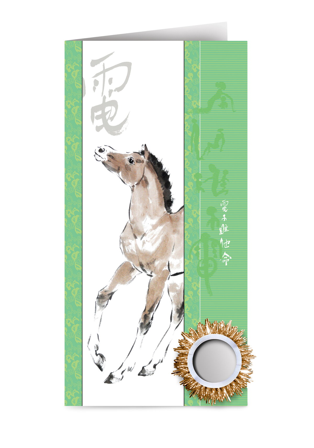 Полезная открытка redox с биотренажером "Антистресс" "Лошадь символ благородства, свободы и внутренней силы", медицинское золото. Биотренажер выполнен из высококачественного медицинского золота, электрические витамины 0,030,5 A. Предназначен для массажа пальцев рук.