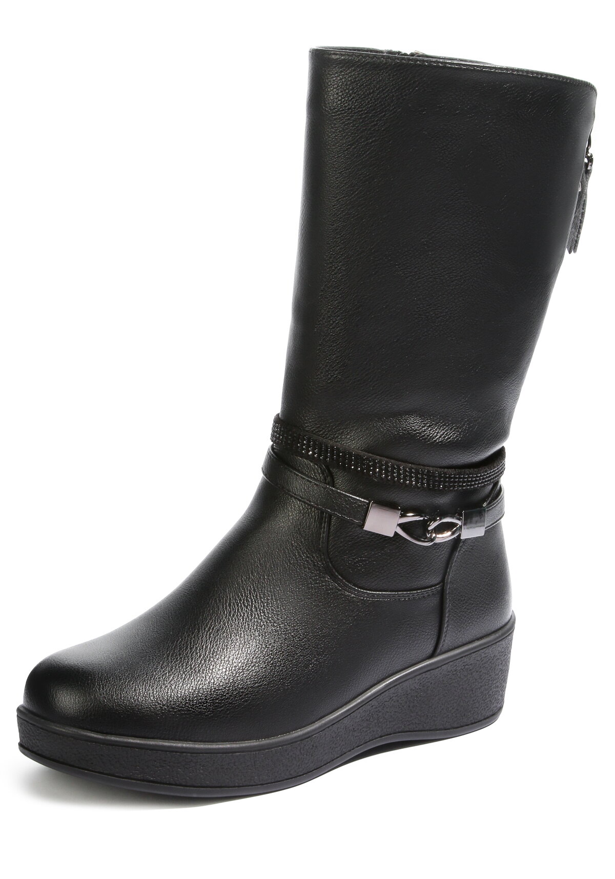 Изысканные классические сапоги — воплощение комфорта и элегантности. Благодаря продуманному дизайну с закругленным мысом и устойчивой танкетке, модель обеспечивает непревзойденную стабильность при ходьбе. Особая антискользящая подошва гарантирует безопасность и уверенность в каждом шаге, делая эти сапоги идеальным выбором для повседневной носки.