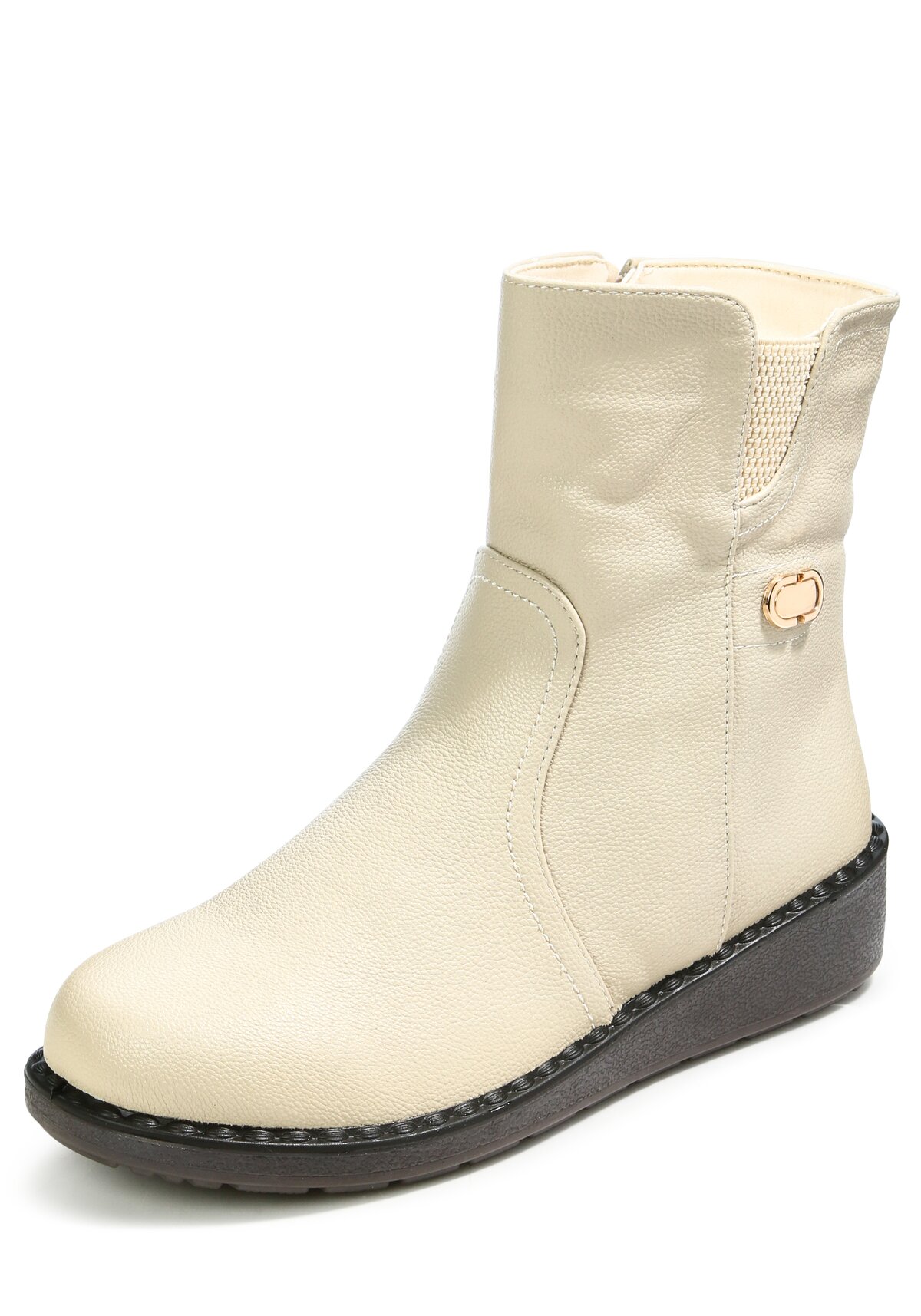 Полусапоги из искусственной кожи подходят для повседневной носки. Текстильная стелька обеспечивает комфорт в течение дня. Модель представлена в трех цветах: бежевый, черный, молочный.
