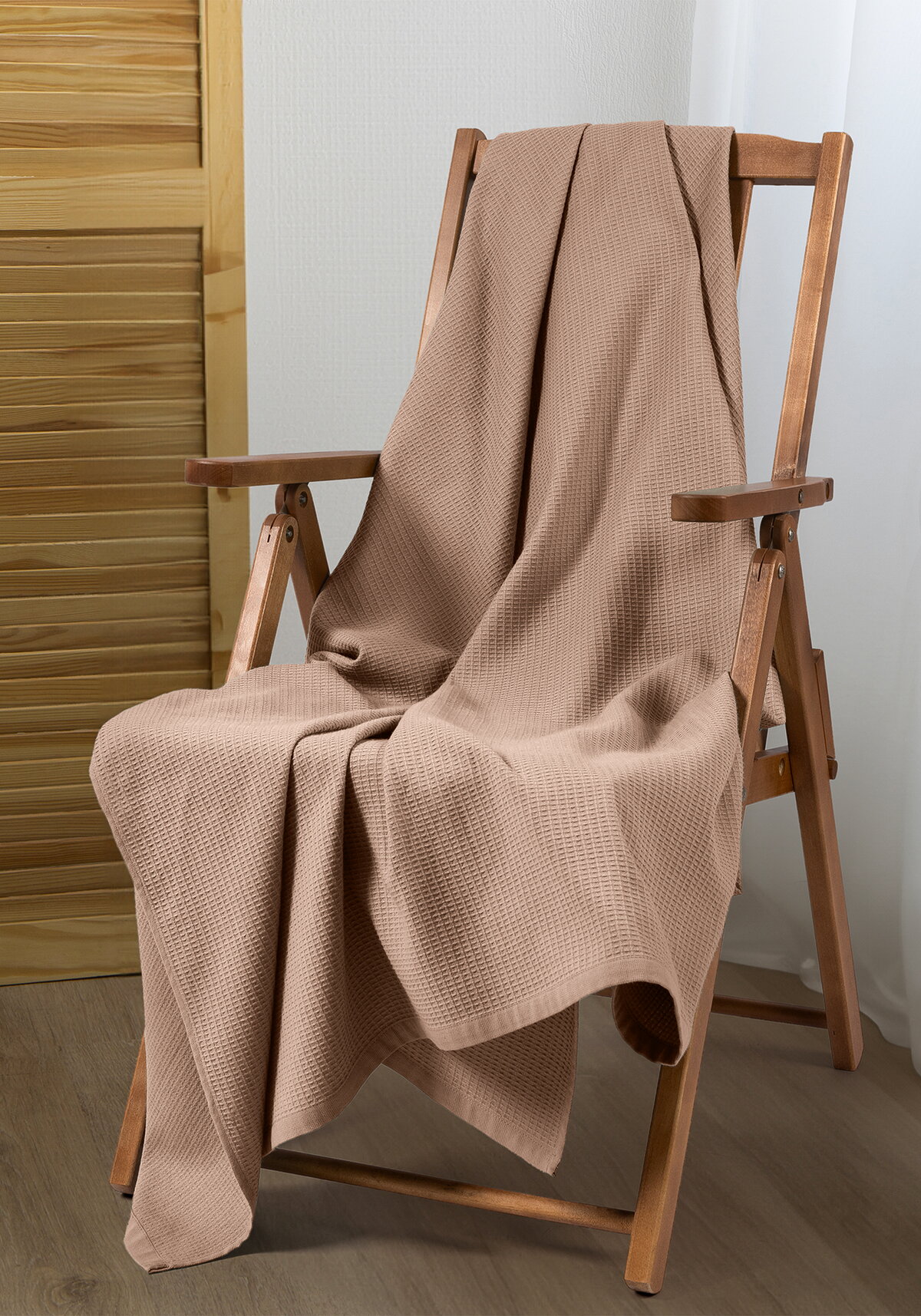 Вафельная простыня из натурального хлопка отличается приятной текстурой и отличной воздухопроницаемостью. Мягкая и прочная ткань обеспечивает комфортный сон и хорошо переносит многократные стирки. Это практичное решение для уютной спальни.
