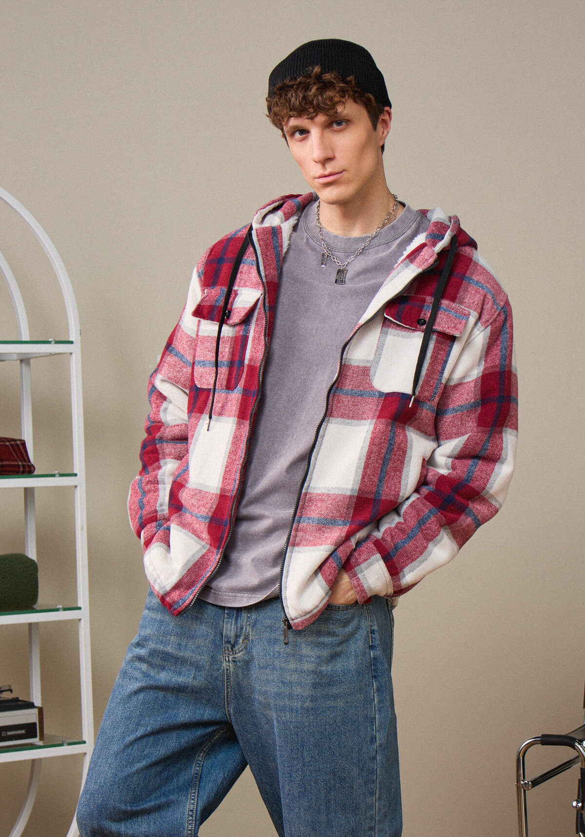 Мужская утепленная рубашка в клетку. Силуэт немного заужен книзу, плечо спущено. На груди два накладных кармана с клапаном. Подклад выполнен из утепленной ткани - шерпы.