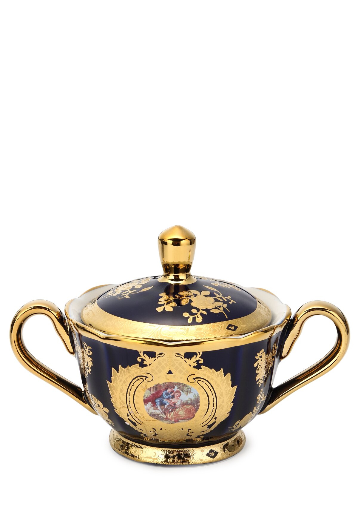 Роскошную сахарницу смело можно рекомендовать как самый изысканный подарок. Все предметы изготовлены из прочного фарфора, это делает посуду идеальной для ежедневного использования. Фарфор Royal Classics при легком ударе деревянной палочкой издает характерный высокий чистый звук. Столовая посуда Royal Classics - это прекрасное украшение стола и великолепный предмет домашнего интерьера, поднимающий настроение.