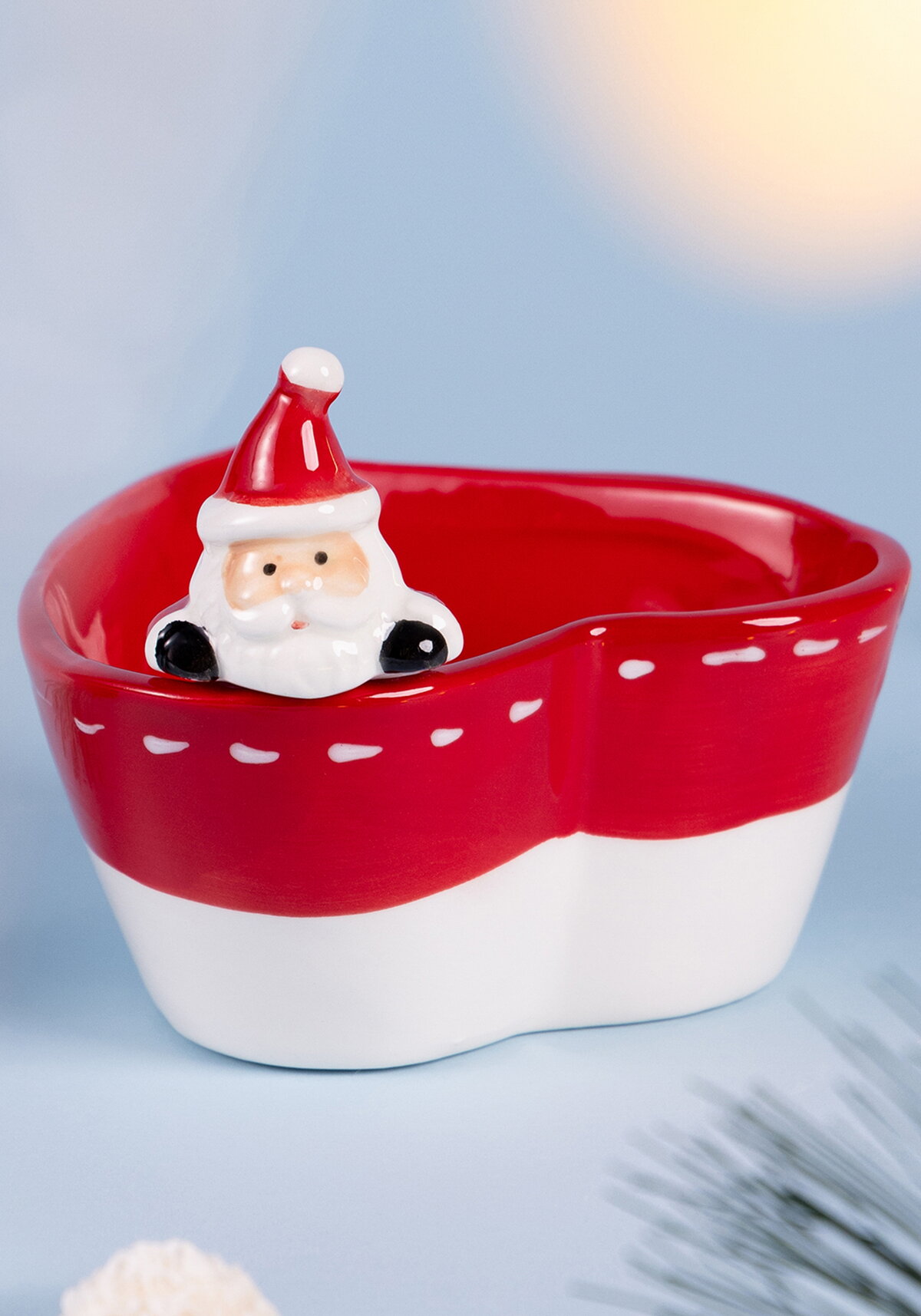 Красный, зелёный, белый - цвета, которые дышат радостью. Каждое блюдо - с мини-фигуркой Деда Мороза или Снеговика, словно вышедших из новогодней сказки, чтобы стать частью вашего дома. Сердце, звезда, прямоугольник с декоративными швами - формы, полные любви и внимания. Гладкая глазурь, приятная на ощупь, с аккуратной росписью и объёмными элементами - всё здесь создано для того, чтобы радовать глаз и душу.