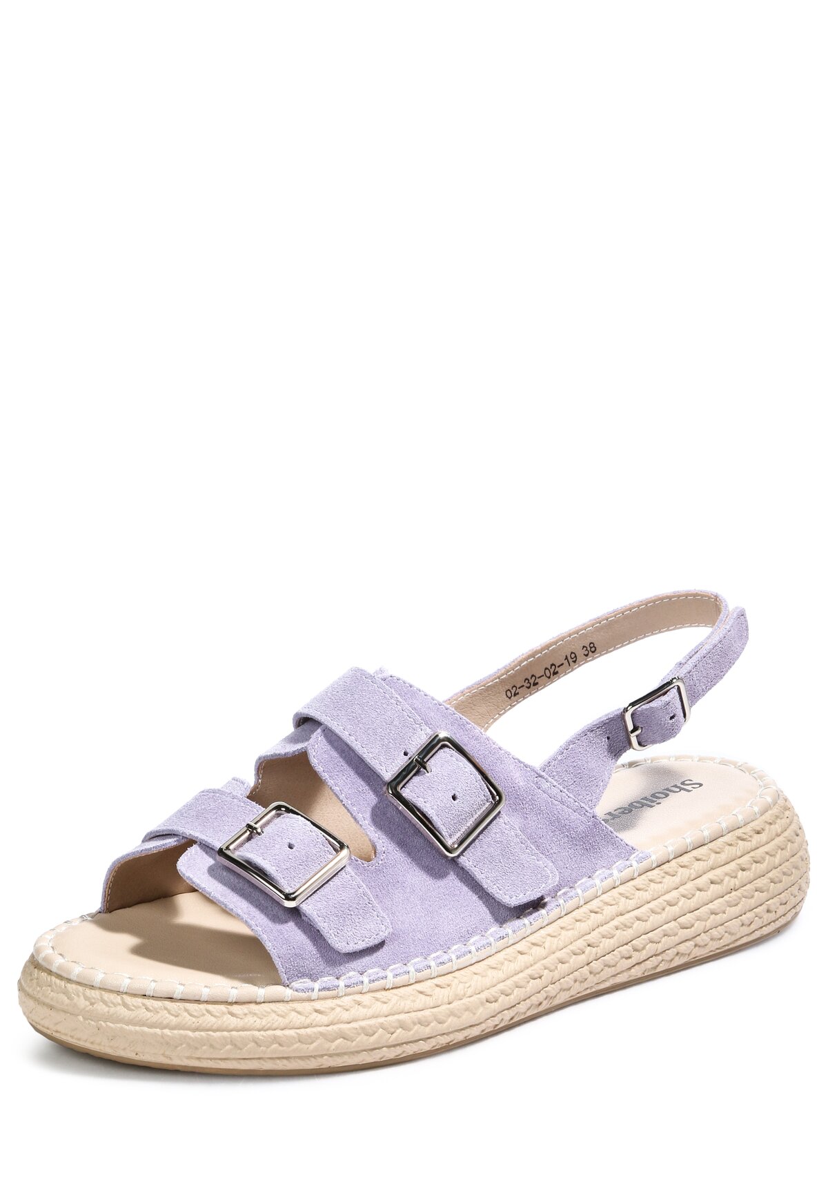 Сандалии из замши — стильная и удобная летняя обувь. Текстильная стелька создает дополнительный комфорт. Модель представлена в трех цветах: бежевый, сиреневый, оранжевый.