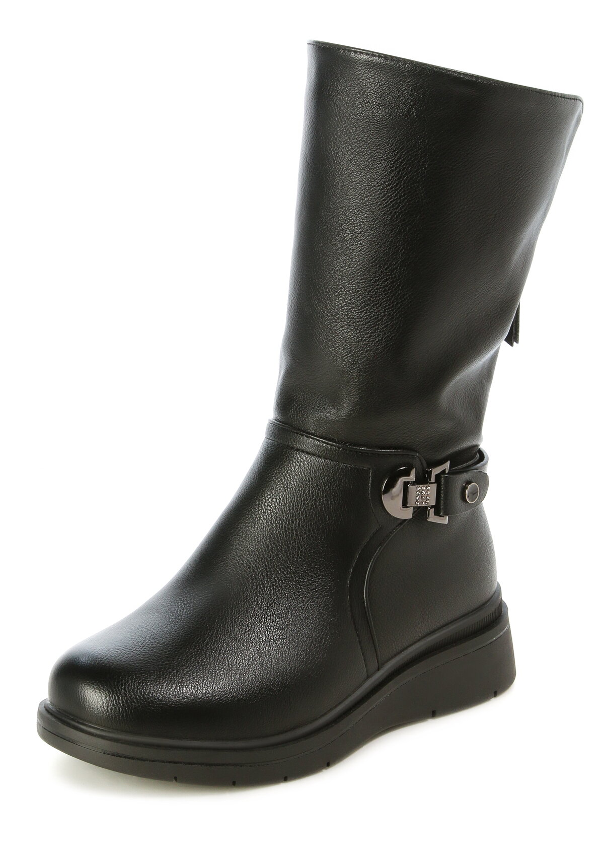Тёплые и практичные зимние сапоги «Динара» созданы для комфорта и удобства даже при высоком голенище. Модель оснащена двумя молниями: основной — сбоку для лёгкого надевания, и дополнительной — сзади, которая позволяет расширить голенище на 5 см, обеспечивая идеальную посадку на икру. Съёмная стелька из мягкого искусственного меха дарит тепло и возможность персонализации ухода. Устойчивая танкетка высотой 5 см добавляет роста без ущерба для комфорта.