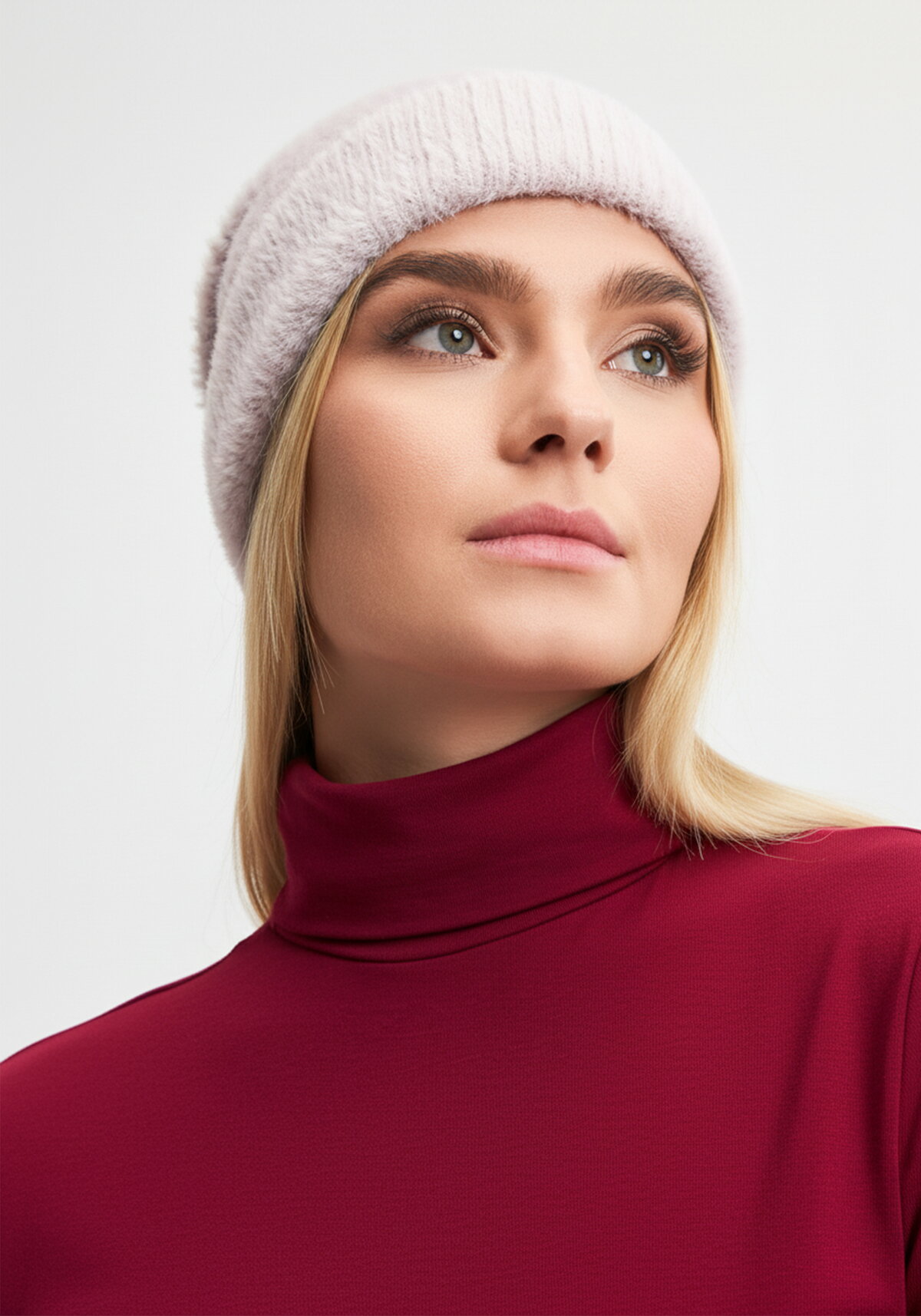 Однотонная шапка с отворотом из шелковистой акриловой пряжи. Рисунок "Английская резинка". Вискоза в составе обеспечивает воздухопроницаемость, мягкость, насыщенность цвета и износостойкость. Эффект перламутра в пряже дает эффект светящегося оттенка кожи лица, освежает и молодит.