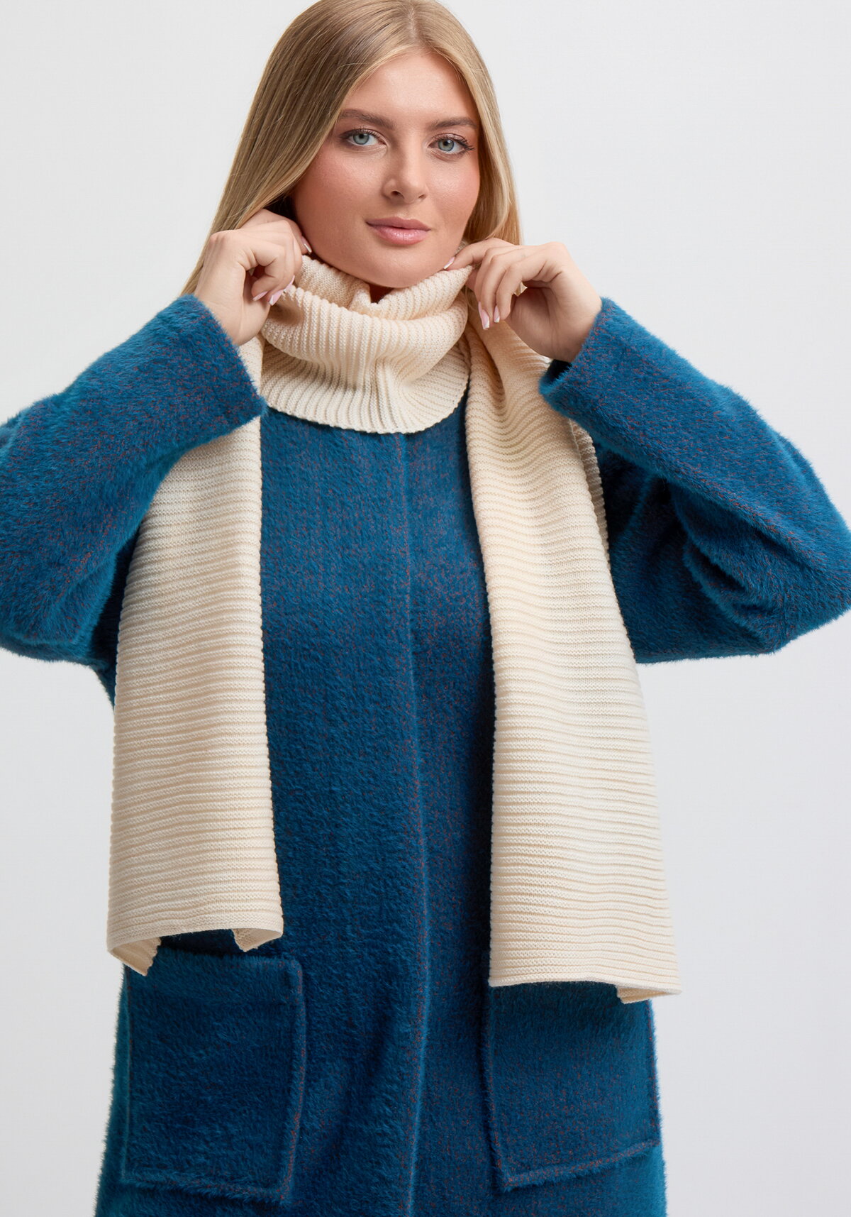 Мягкий и комфортный шарф в рубчик. Шерсть в составе отлично согревает.