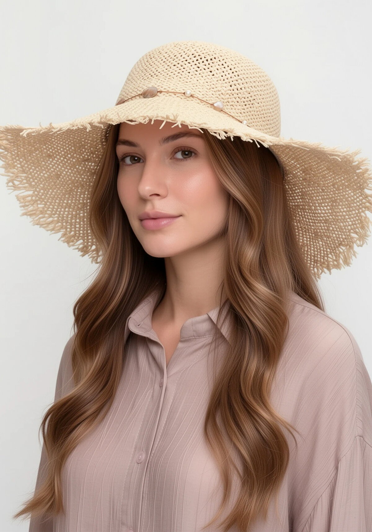 Изысканная шляпа с широкими полями, украшенная утонченным декоративным элементом. Идеальный штрих для создания завершенного и элегантного образа.