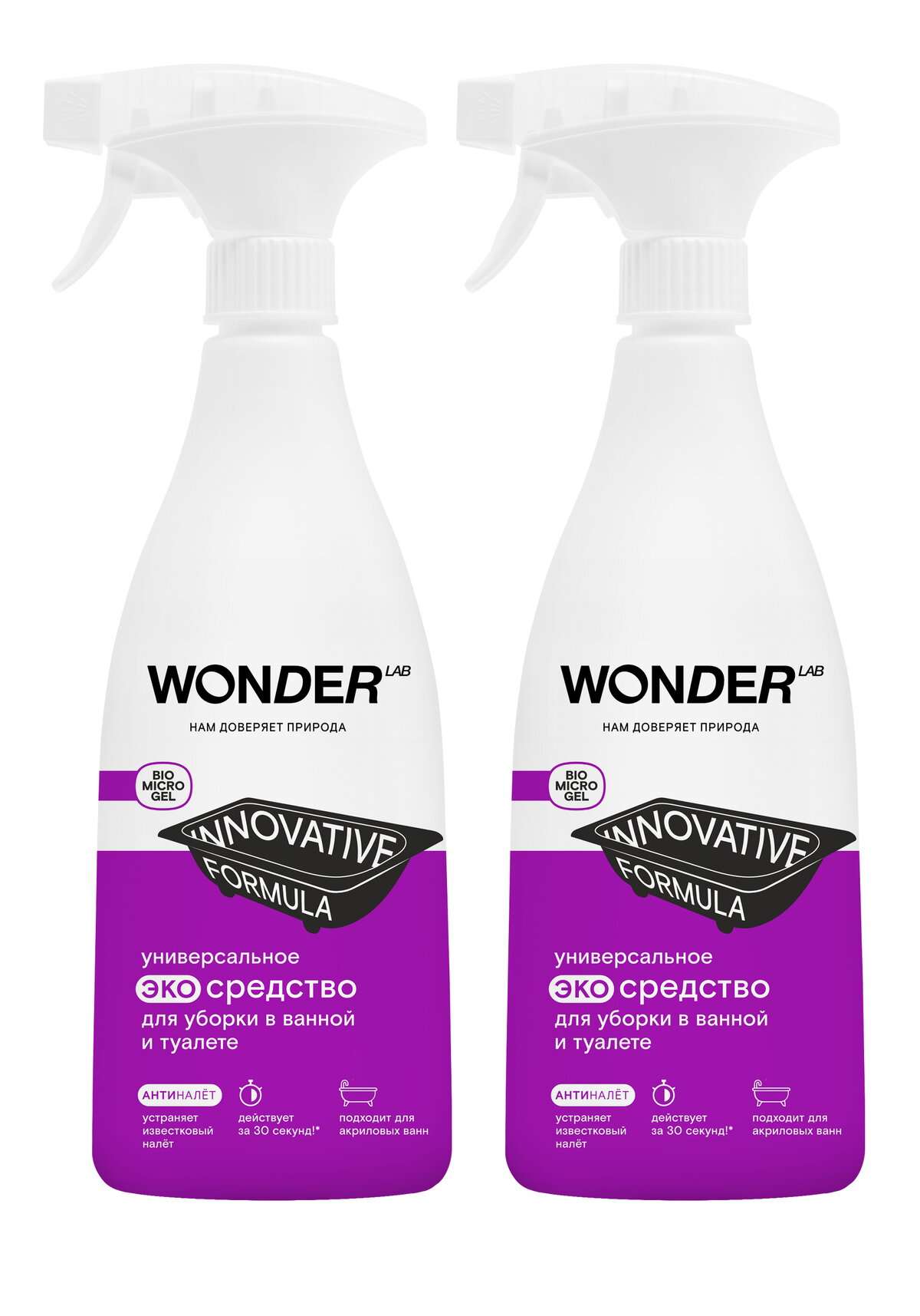 Чистящее средство для ванных комнат и санузлов WONDER LAB подходит для мытья любых поверхностей: всех видов ванн (акриловых, чугунных, стальных) и душевых кабин, смесителей, плитки, унитазов. Эффективно удаляет мыльный и известковый налет, ржавчину. Чистящее средство для ванн и унитазов действует за 30 секунд, быстро смывается водой, не оставляет плёнки, царапин и разводов. Экологичное средство не содержит хлора и не вредит септикам. Без резкого токсичного запаха.