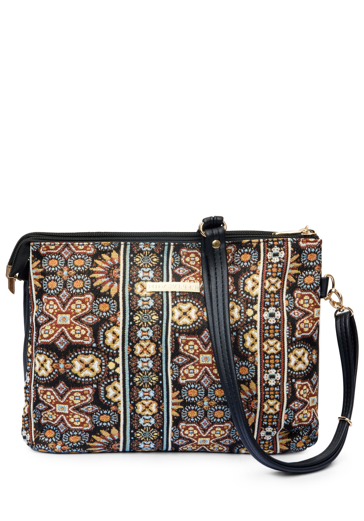Женская сумочка выполнена из мягкой гобеленовой ткани, ее можно носить в руках или на плече — ремень регулируется по длине. Модель оснащена основной молнией и внешним карманом на молнии, вмещает телефон, кошелек и ключи. Сумочка подходит для прогулок, работы, поездок и путешествий, а оригинальный принт дополняет образ.