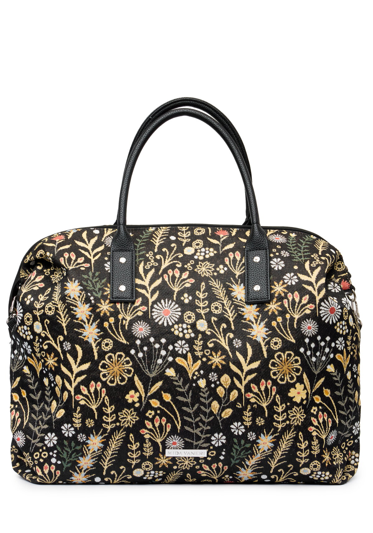Сумка‑ридикюль из гобелена вмещает документы формата А4. Модель оснащена наружным и внутренним карманами на молнии, а также отдельным отделением для мобильного телефона. Для удобства предусмотрен ремень для ношения на плече.