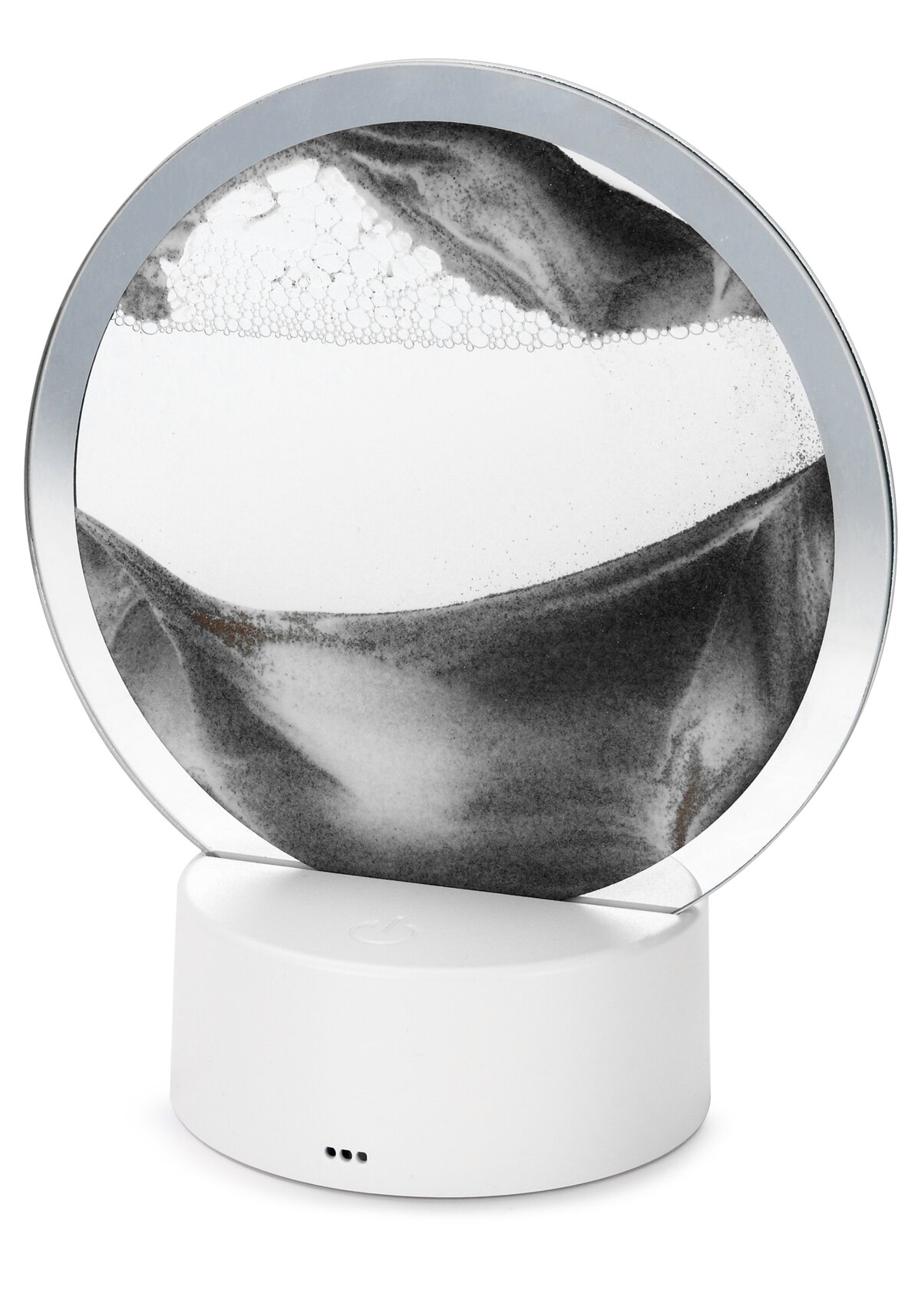 Современный светильник "Песчаные дюны" выполнен в минималистичном дизайне. Светильник-ночник состоит из пластиковой панели с расположенными внутри светодиодами и круглой стеклянной пластины. При переворачивании светодиодного светильника песок начинает пересыпаться, формируя красивые необычные узоры внутри стекла. Цвет и режимы свечения декоративного светильника переключаются касанием по панели с сенсорами. Настольный светильник-ночник работает от трех пальчиковых батареек АА и может быть установлен в любом месте комнаты. Также вы можете подключить его к сети через micro-USB кабель, входящий в комплект.