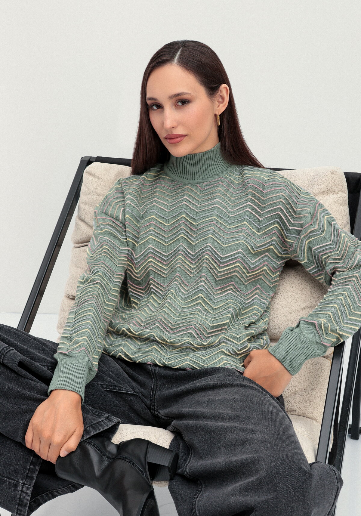Свитер с высоким горлом из пан-волокна с шерстью. Изделие выполнено из стабилизированной пряжи, благодаря чему не линяет, не выгорает на солнце и прекрасно держит форму даже после многократных стирок. За ним легко ухаживать: рекомендована машинная стирку при температуре не выше 30 градусов, легко сушится и гладится обычным способом. Свитер станет базовой вещью вашего гардероба, и вы сможете органично вписать его в самые разные образы.