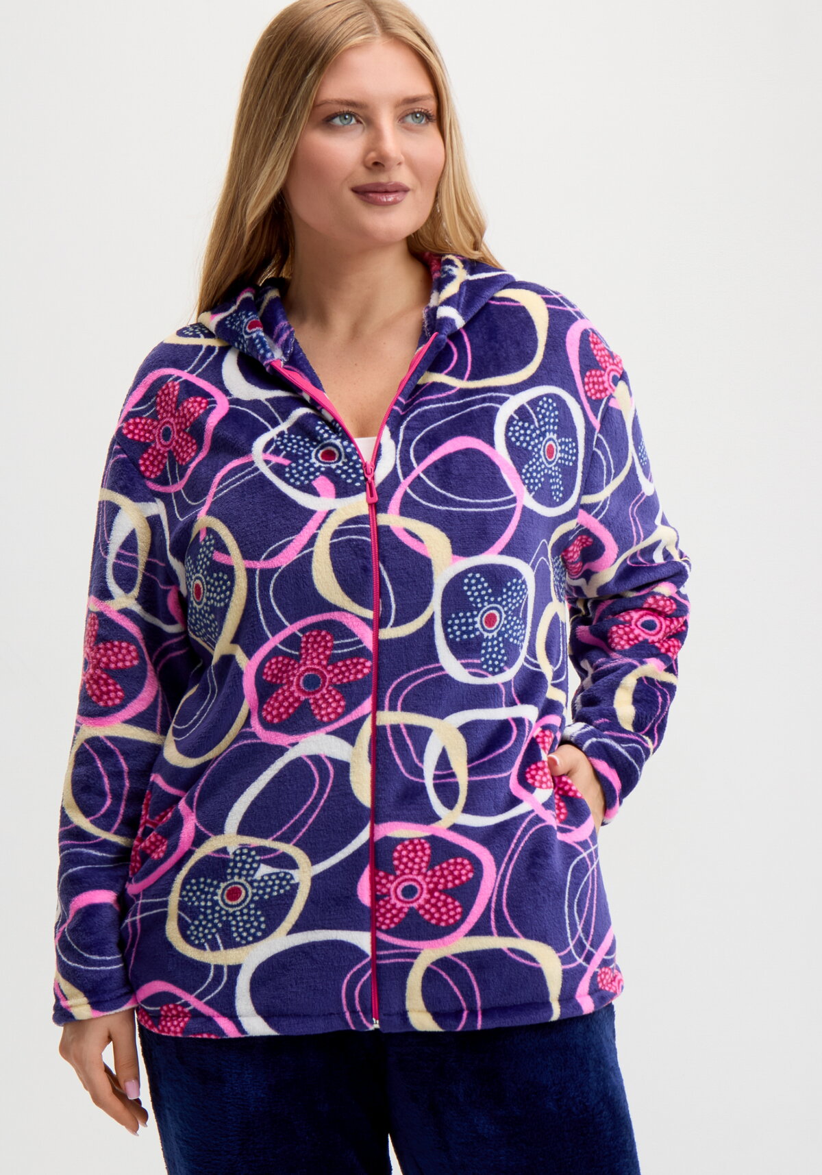 Толстовка свободного кроя. Спущенное плечо. Свободный рукав полной длины. Застежка-молния. Глубокий капюшон. Боковые карманы с полуовальным входом.