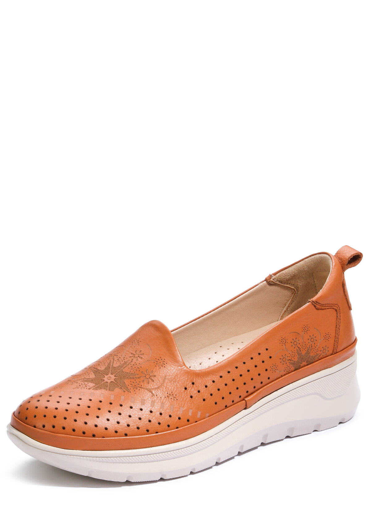Откройте для себя мир элегантности и комфорта с женскими туфлями «Леони» — модель на танкетке из натуральной кожи сочетает утончённый стиль с продуманным удобством, подчёркивая вашу индивидуальность в любой ситуации. Цветочный декор придаёт модели особое очарование, а сквозная перфорация обеспечивает отличную вентиляцию: ноги останутся свежими даже в тёплые дни. Анатомическая съёмная стелька и равномерное распределение веса за счёт танкетки гарантируют комфорт при длительной носке, а устойчивая подошва обеспечит безопасность на разных поверхностях. Удобная петля облегчит надевание и снятие туфель — эта универсальная пара станет практичным дополнением к вашим образам для офиса, прогулок и вечерних выходов!
