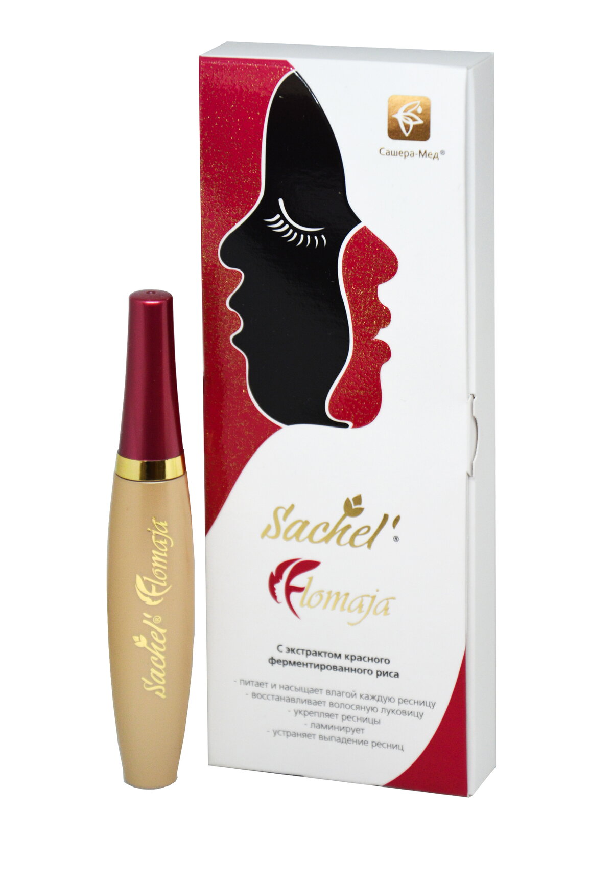 Sachel Flomaja органическая натуральная тушь для ресниц с синим растительным пигментом на основе порошка спирулины, нативной комплексной формулы ламелл экстраординарных растительных масел и концентратов активных структур растений, с фитокератином и витаминно-минеральным комплексом.