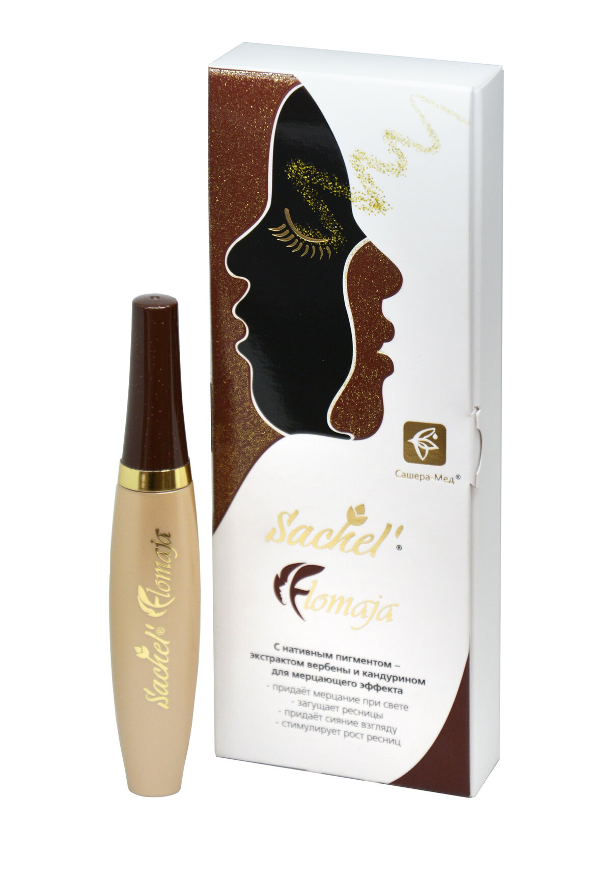 SachelFlomaja органическая натуральная тушь для ресниц с коричневым растительным пигментом на основе порошка вербены, обогащённая кандурином люминайзером с мерцающим эффектом и экстраординарными растительными маслами, витаминами, антиоксидантами.
