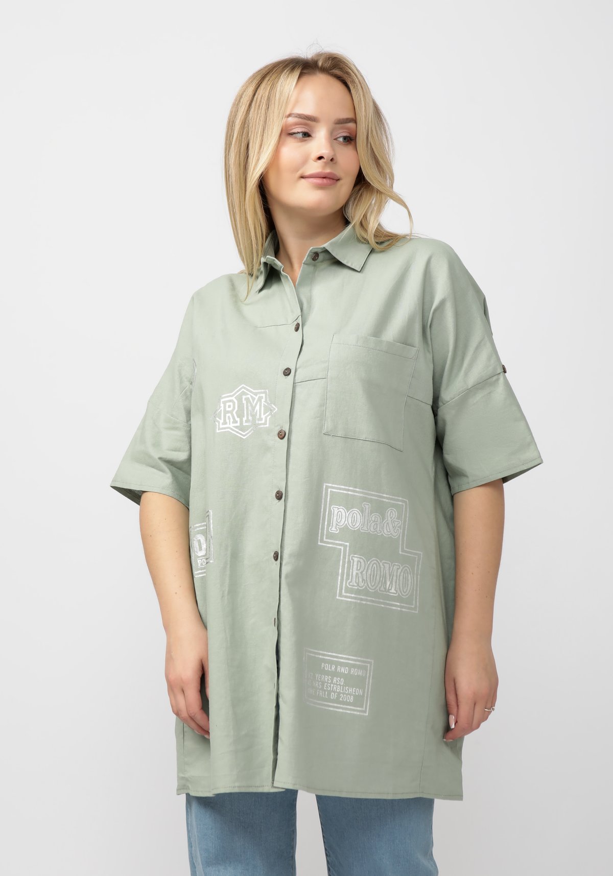 Удлиненная рубашка оригинального дизайна. Нагрудный карман. Текстовый принт. В составе натуральные материалы (хлопок и лен), а значит, вам будет комфортно даже в самый жаркий день. Рубашка гармонично вписывается в разные образы и сочетается с другими вещами в гардеробе.