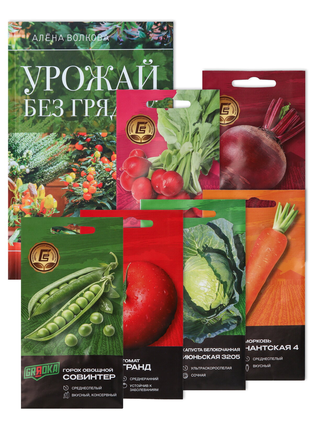 ХарактеристикиСостав набора: книга + 4 пакета суперэлитных семян GRЯDKA