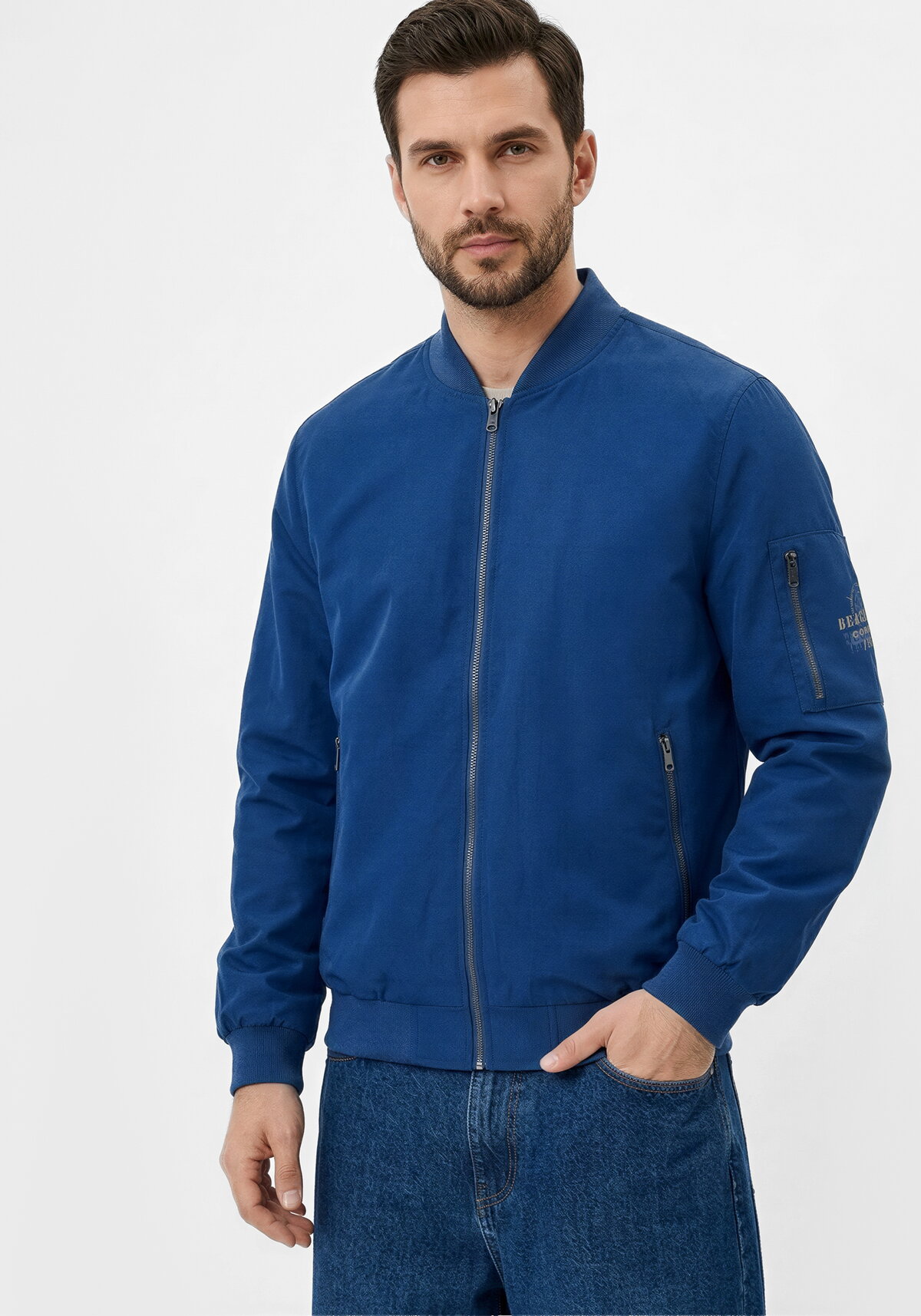 Практичный бомбер с функциональными карманами на молнии и лаконичным текстовым принтом на рукаве. Отличный вариант для повседневной носки прохладным летним вечером или ранней осенью. Широкий размерный ряд. Комфортный крой.