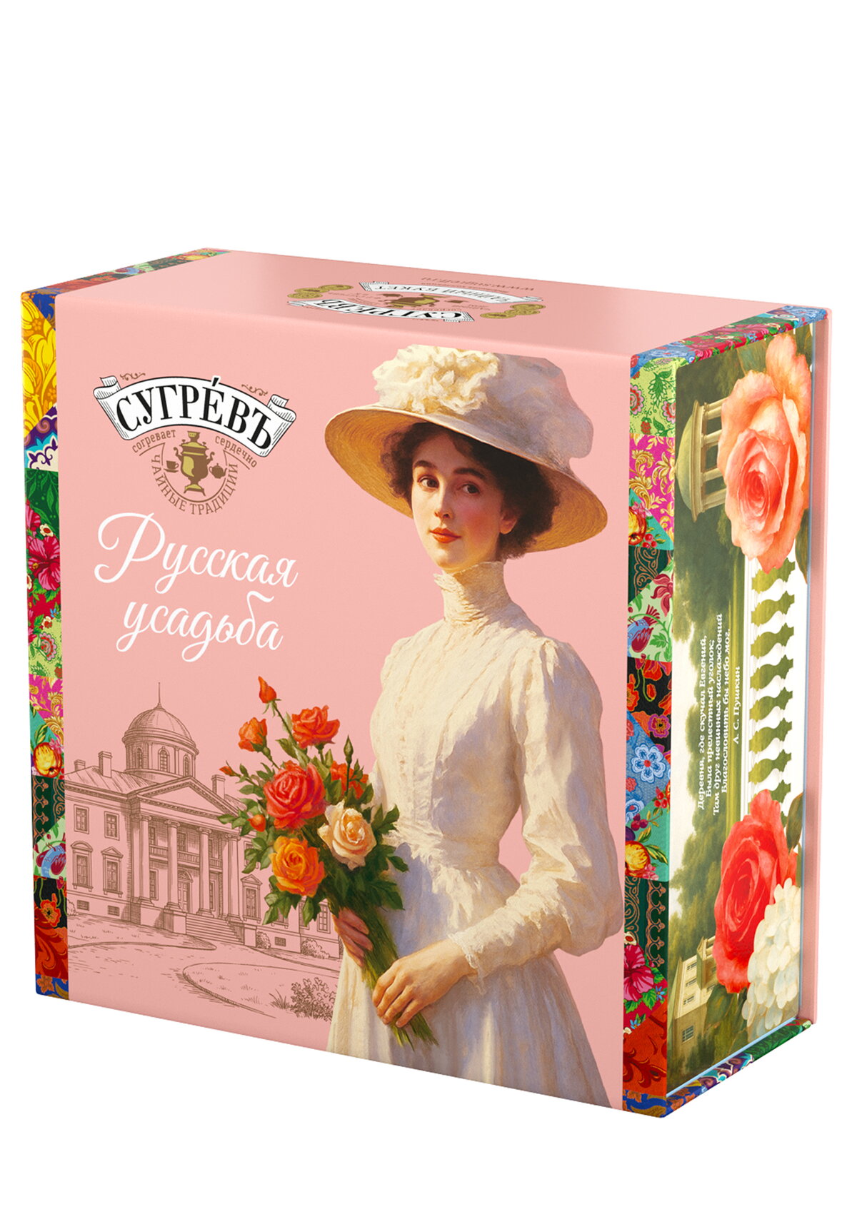 Откройте для себя очарование старинных русских традиций с подарочным набором «Русская усадьба» — изысканным сочетанием гастрономического удовольствия и эстетики! Элегантная шкатулка в стиле классической усадьбы, украшенная полноцветной печатью, сразу создаёт атмосферу душевного уюта и погружает в атмосферу культурного наследия. Внутри вас ждут два восхитительных вида ароматизированного чая, нежное варенье из лепестков роз и утончённая карамель со вкусом чайной розы — каждый элемент продуман до мелочей. Гармоничная вкусовая композиция подарит незабываемые моменты наслаждения и станет источником тёплых эмоций. Этот набор — идеальный подарок, который порадует и близких, и вас самих!