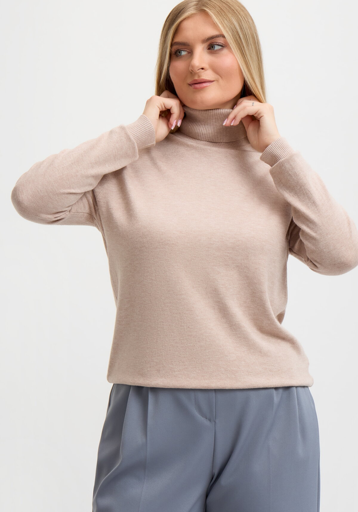 Водолазка с длинным рукавом прилегающего силуэта. Ворот высокий с отворотом.