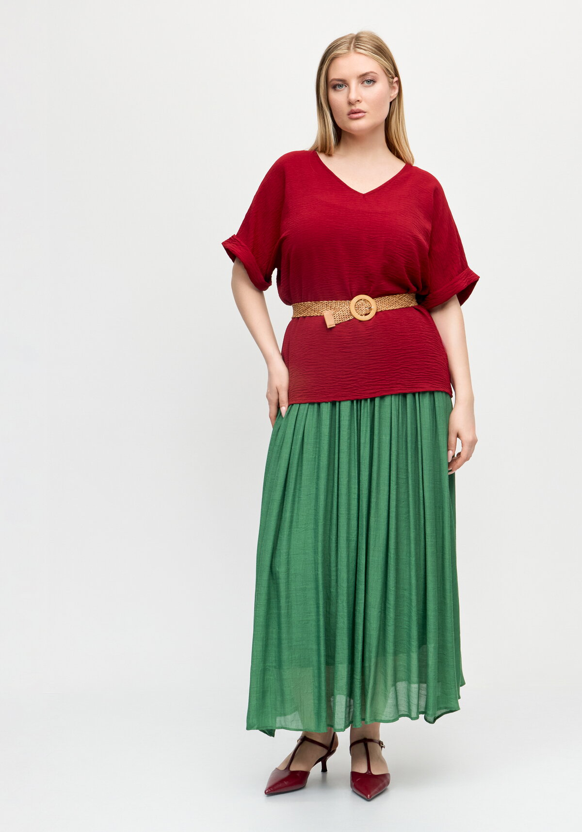 Изящная юбка А‑силуэта из фактурной хлопковой «жатки» подчеркнёт вашу женственность и добавит образу непринуждённой элегантности — идеальный выбор для стильных повседневных луков. Удобный пояс на резинке, который входит в комплект, гарантирует комфортную посадку и позволяет регулировать обхват талии по вашему желанию. Глубокие разрезы по боковым швам на подкладке обеспечивают свободу движений и делают ношение юбки по‑настоящему удобным в течение всего дня. Лёгкая, дышащая ткань и продуманный крой превращают эту модель в незаменимую часть гардероба — сочетайте её с блузами, рубашками или топами, чтобы создавать безупречные образы!