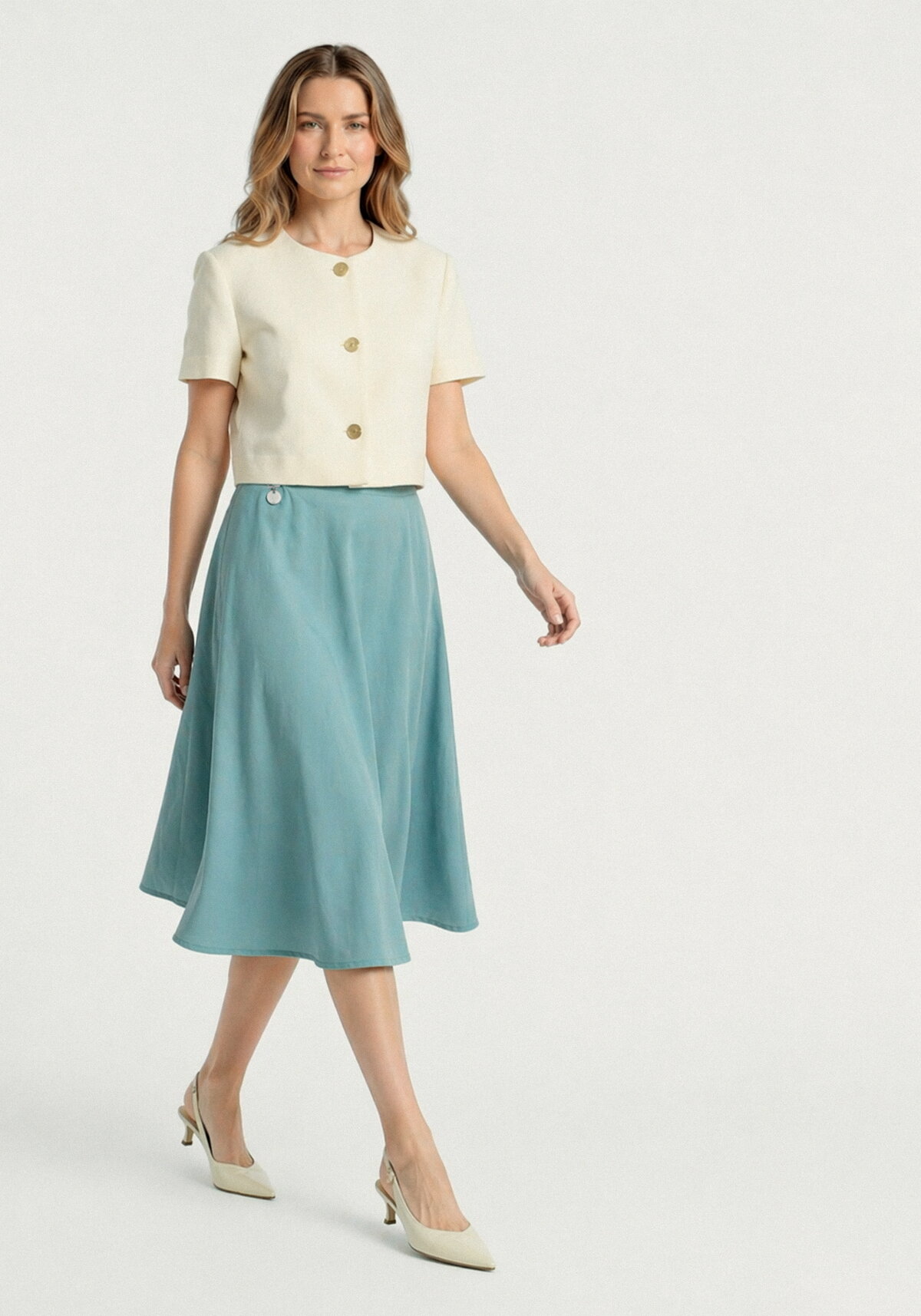 Ощутите лёгкость и свежесть каждого шага в элегантной юбке из натуральных волокон — идеальный выбор для тёплых дней, когда так важно чувствовать себя комфортно. Прямой силуэт изящно подчёркивает естественную красоту фигуры, создавая непринуждённый, но изысканный образ на каждый день. Состав изо льна и хлопка гарантирует отличную воздухопроницаемость и приятные тактильные ощущения — эта модель станет надёжной основой вашего летнего гардероба!