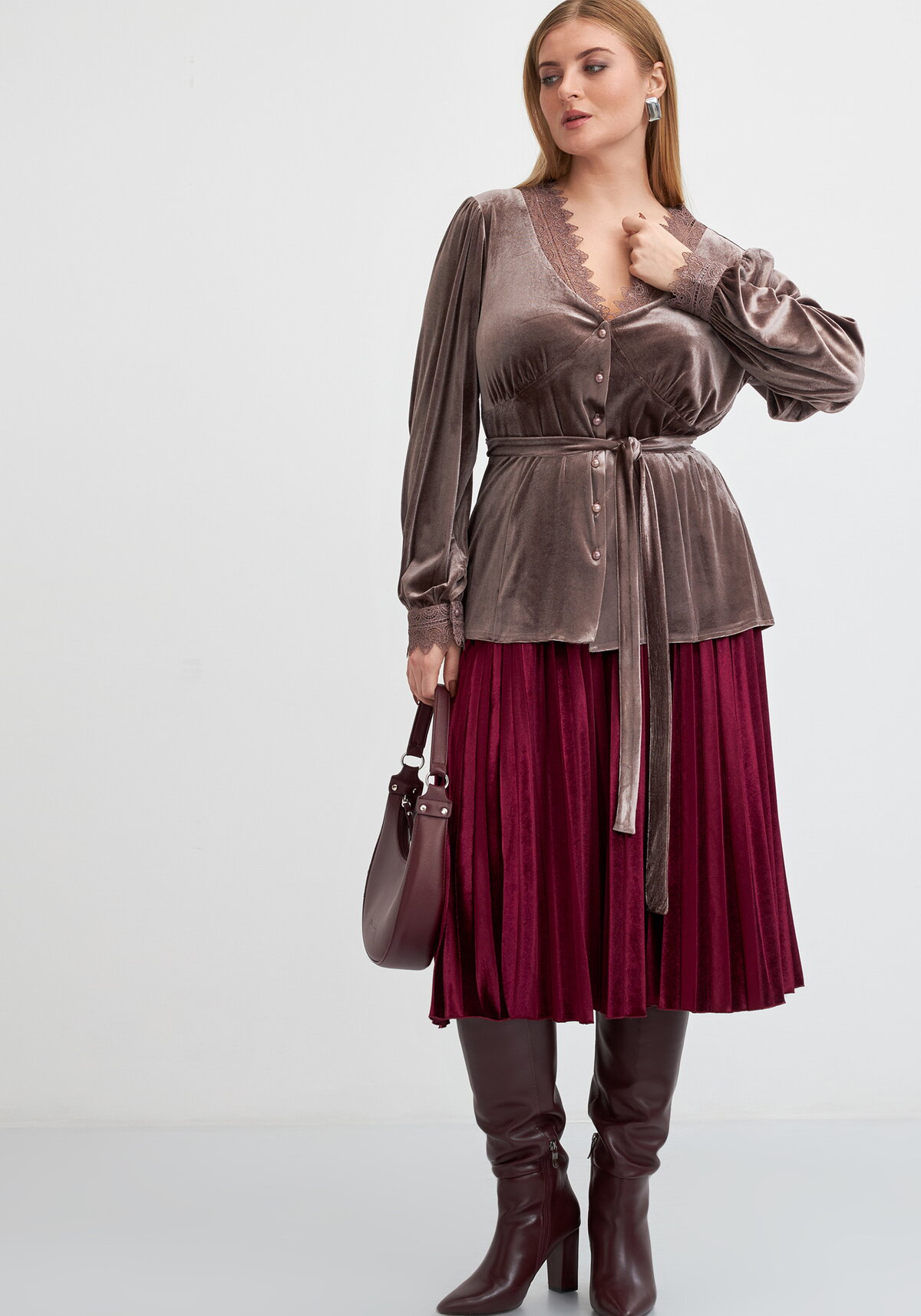 Гофрированная юбка-полусолнце. Пояс на резинке обеспечивает комфортную посадку. Длина миди.