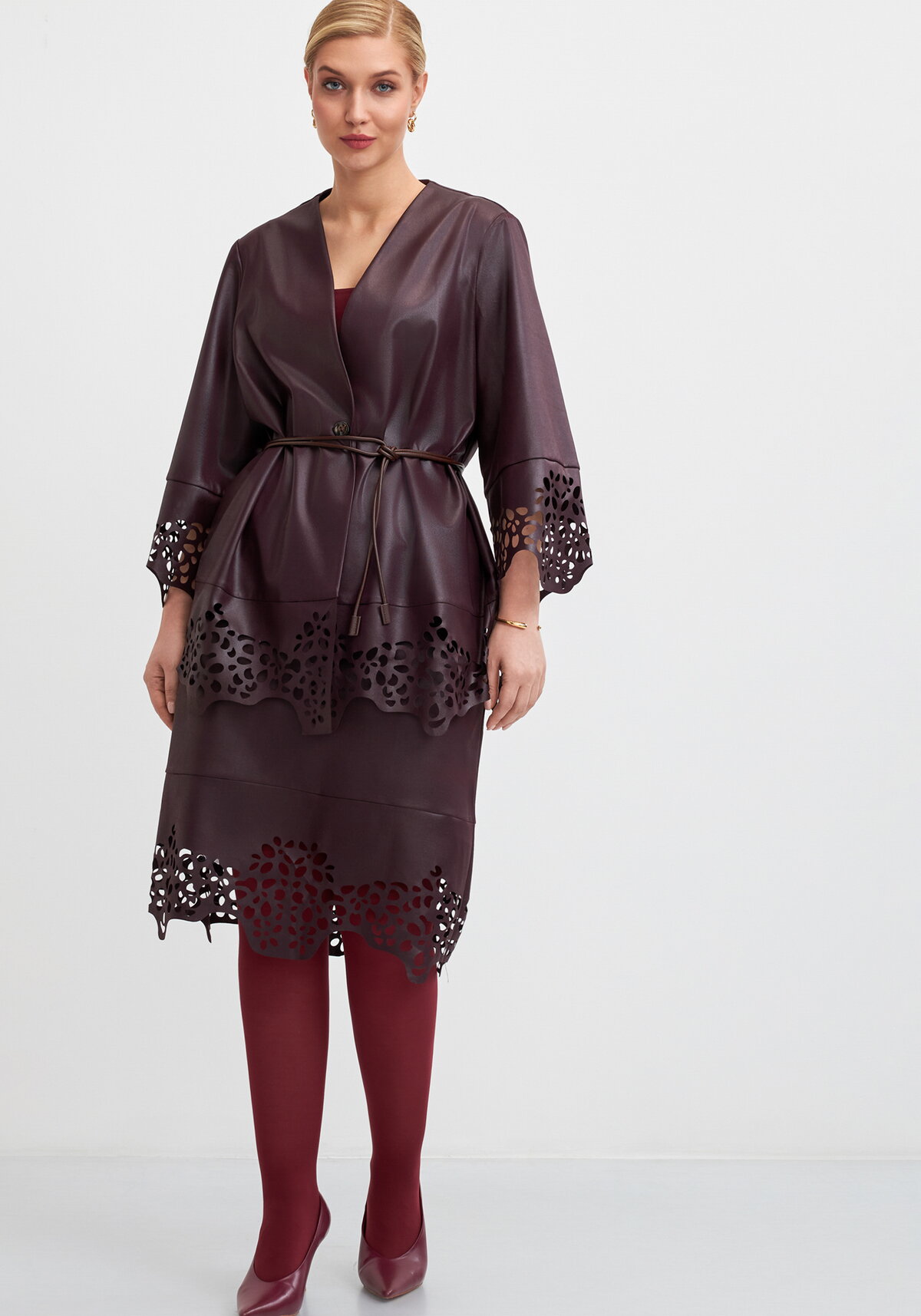 Юбка с перфорированным рисунком А-силуэта. Эластичная резинка на поясе обеспечивает идеальную посадку.