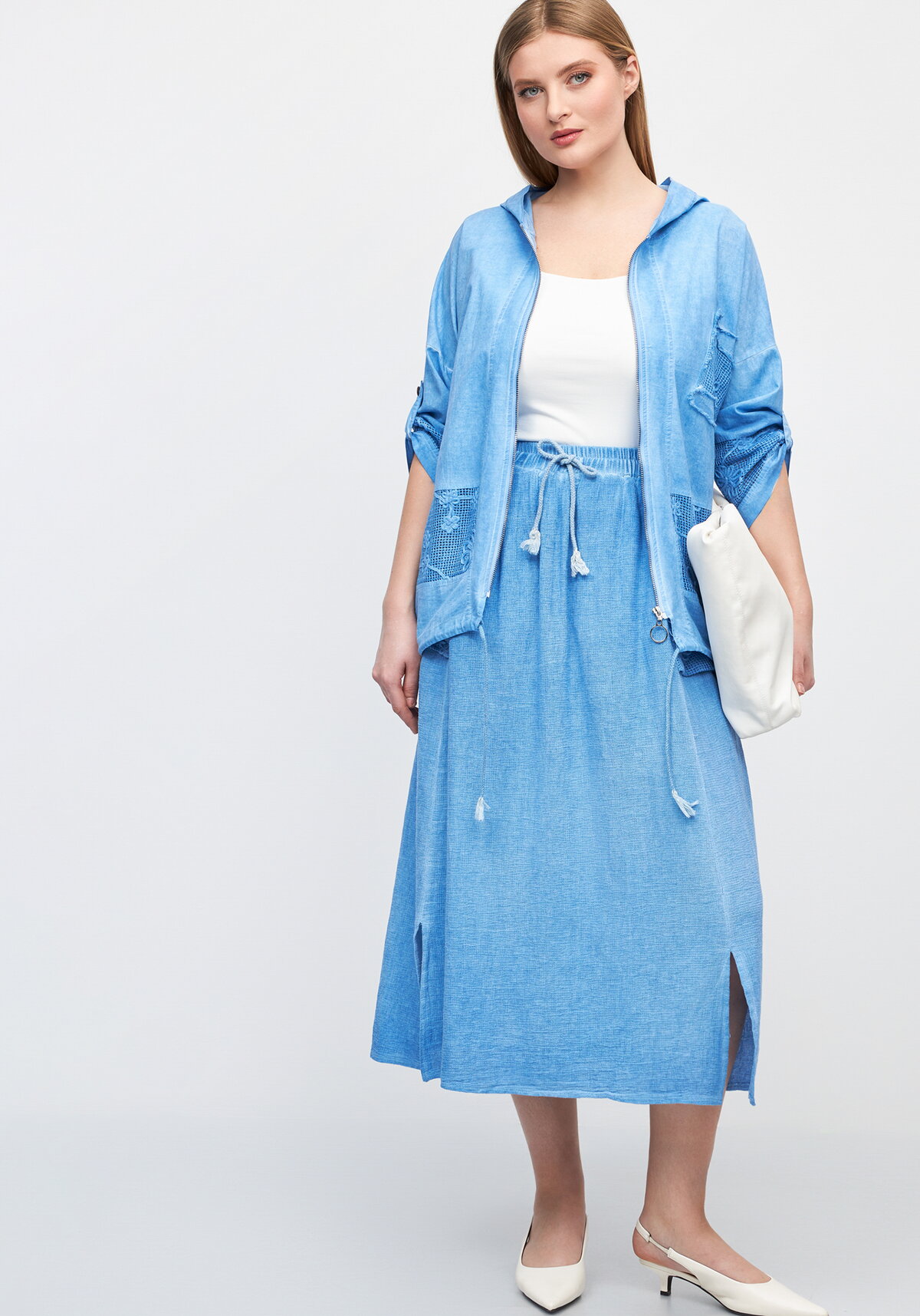Юбка с фактурными накладными карманами. Модель прямого кроя из плотного хлопка создает структурный, выразительный силуэт. Базовая вещь с яркой деталью для современного гардероба.