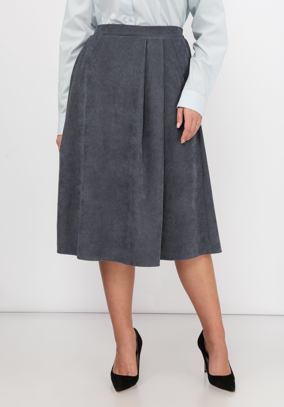Стильная юбка длины миди из микровельвета. Женственный А-силуэт. Эластичная вставка в поясе обеспечивает идеальную посадку по фигуре. Юбка хорошо сочетается с верхом разного фасона: от блузок и топов до джемперов и водолазок. Базовые расцветки. Широкий размерный ряд.
