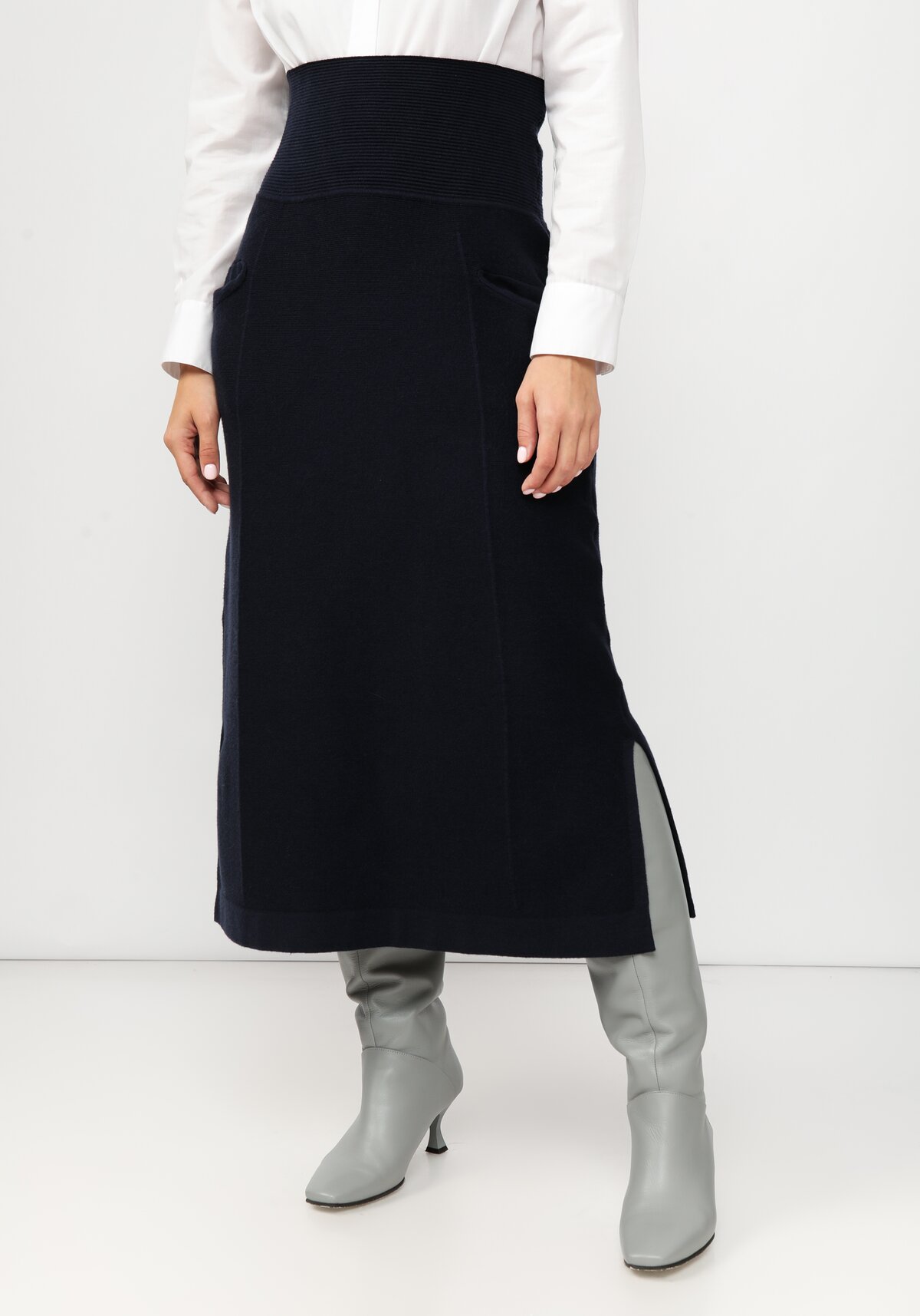 Теплая вязаная юбка с разрезом для дополнительного удобства в носке. Особенностью модели является широкий эластичный пояс, который как мягкий корсет подтягивает животик, моделирует фигуру и визуально удлиняет ноги. В холодное время закрывает спину, очень комфортно и тепло.