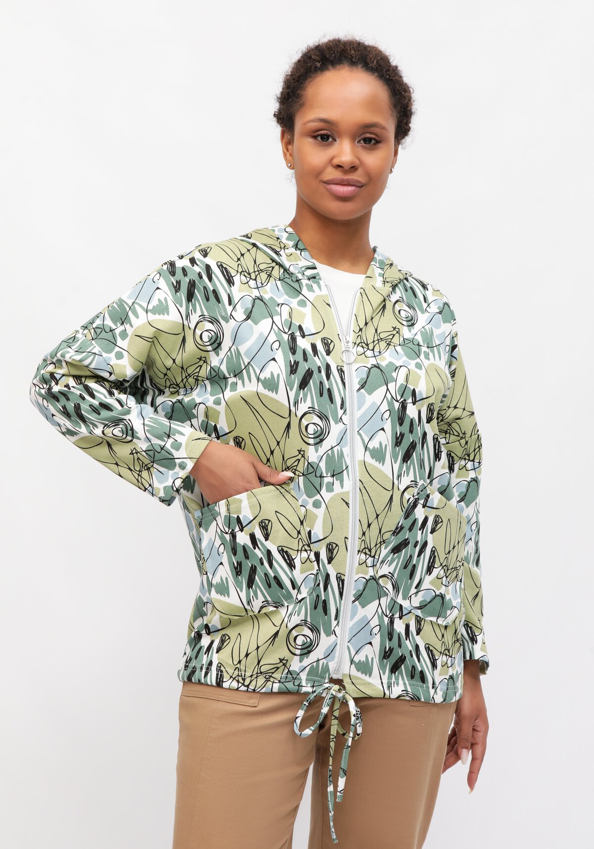 Стильный жакет-бомбер на молнии с капюшоном - идеальный вариант на переменчивую погоду. Низ изделия на кулиске, спереди два рабочих кармана. Сочетайте с прямыми брюками и джинсами – и ваш яркий образ для прогулки, активного отдыха или дачи готов!