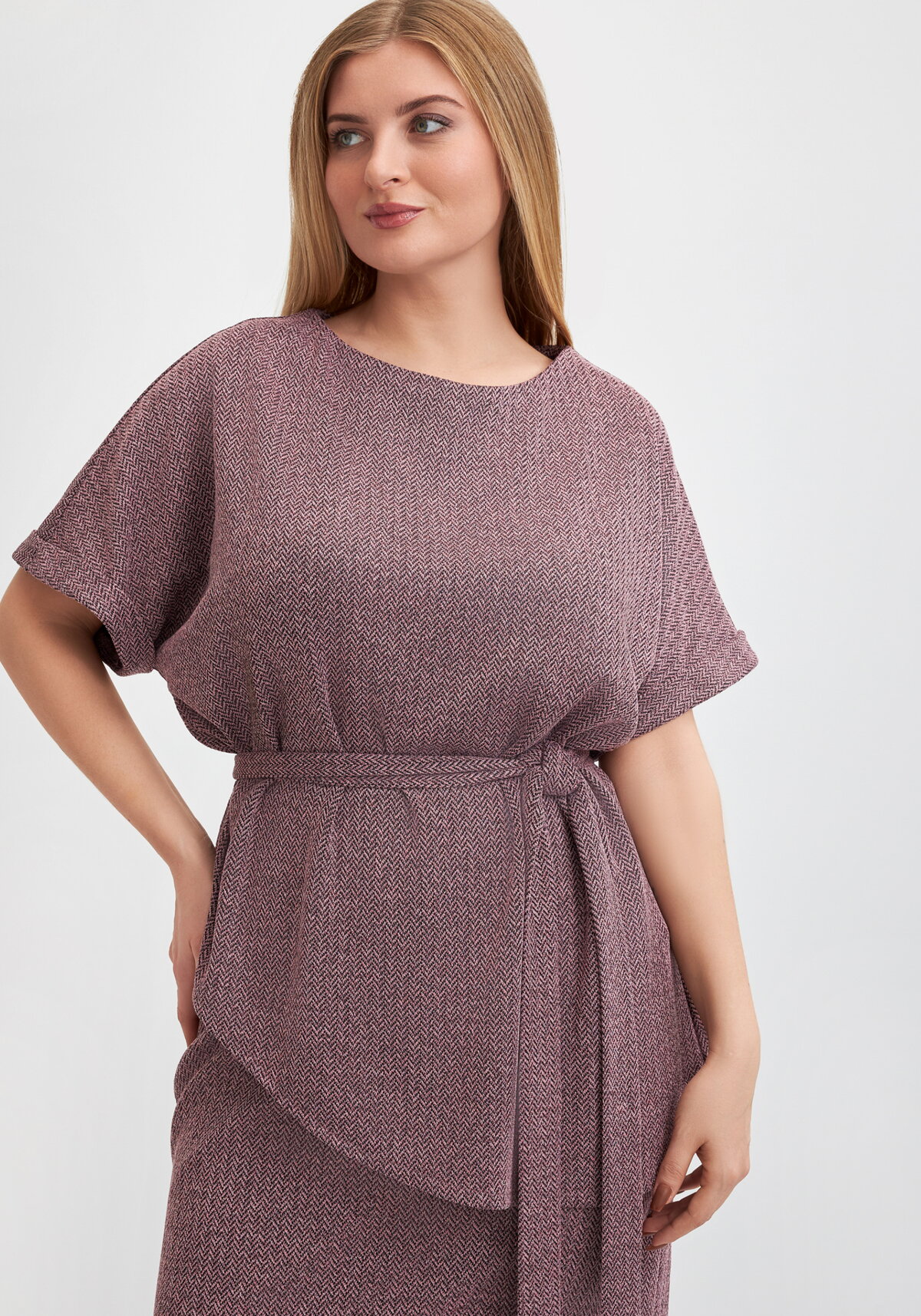 Жилет свободного силуэта из ткани джерси. Спущенное плечо, круглый вырез горловины. Ассиметричная длина. Жилет без застежки. В комплект входит пояс.